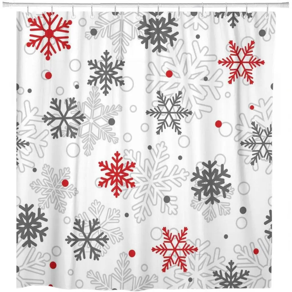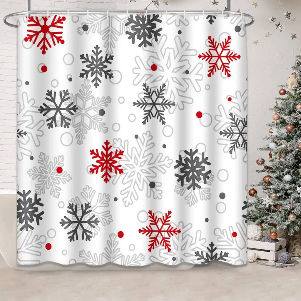 Snowflakes Christmas Shower Curtain - Red & Gray Decor, 72x72 Inches - Multicolor