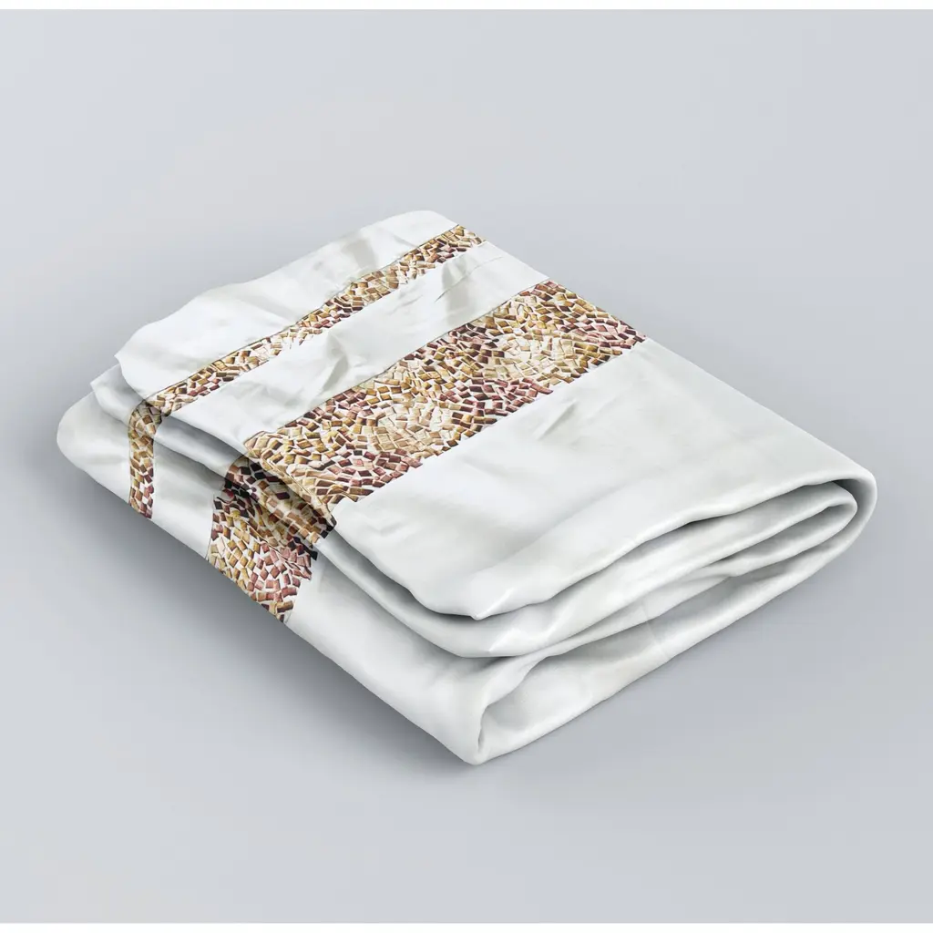 Spa Tile White Soft Fabric Shower Curtain With Multicolor Embroidered Tile Bands - 54"x78" - Brown
