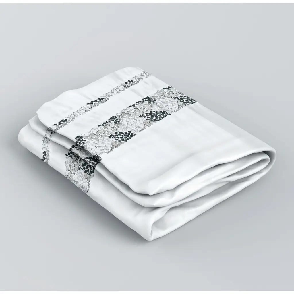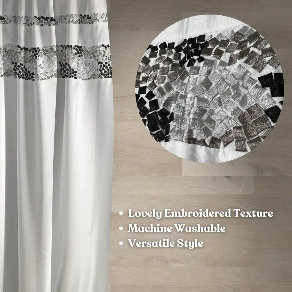 Spa Tile White Soft Fabric Shower Curtain With Multicolor Embroidered Tile Bands - 72"x72" - Black