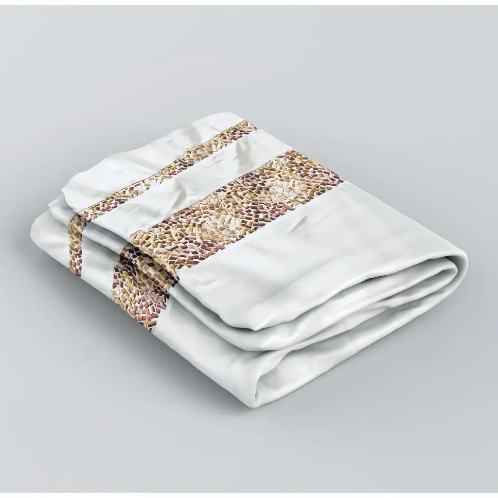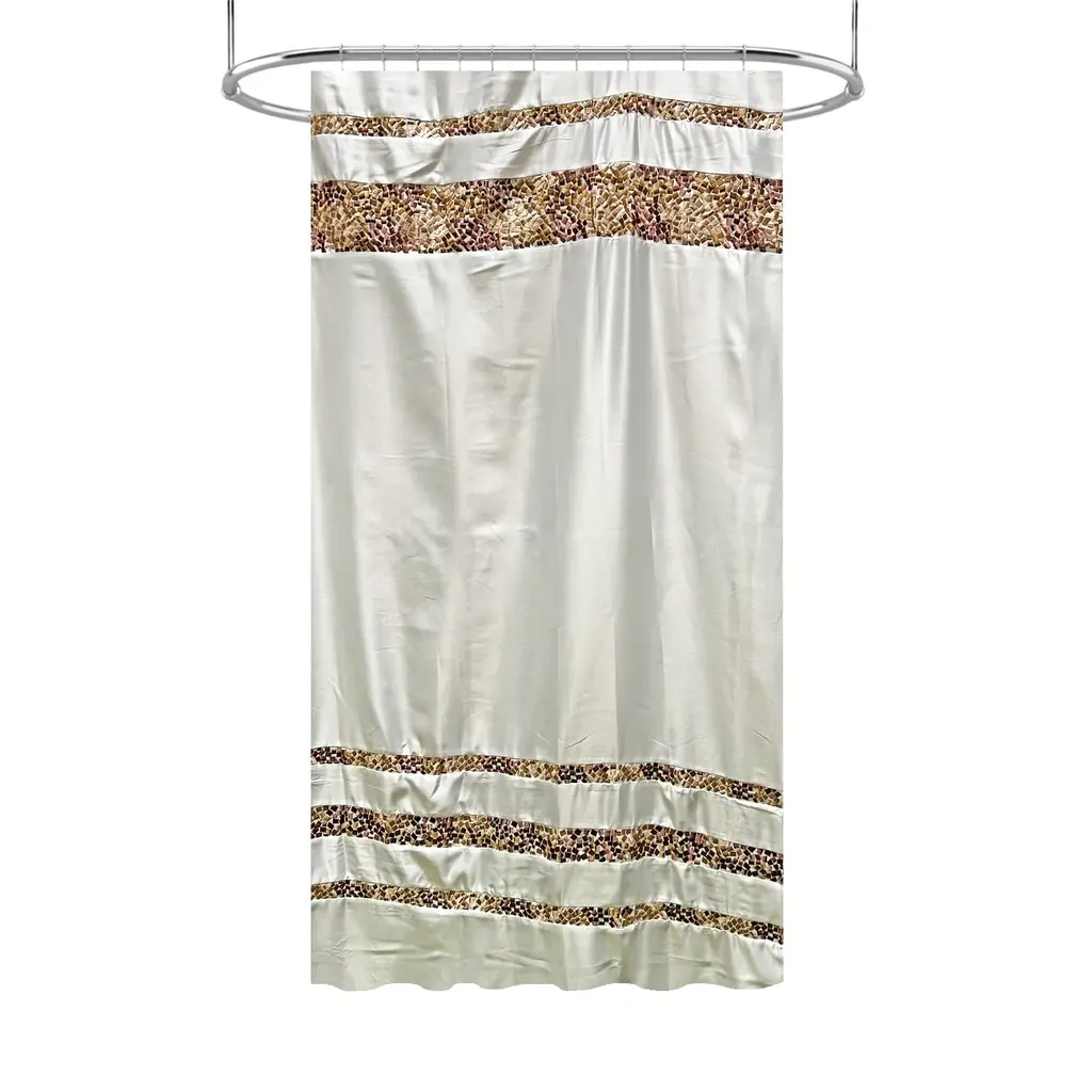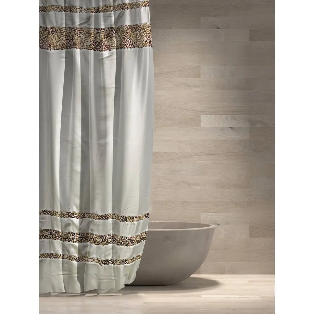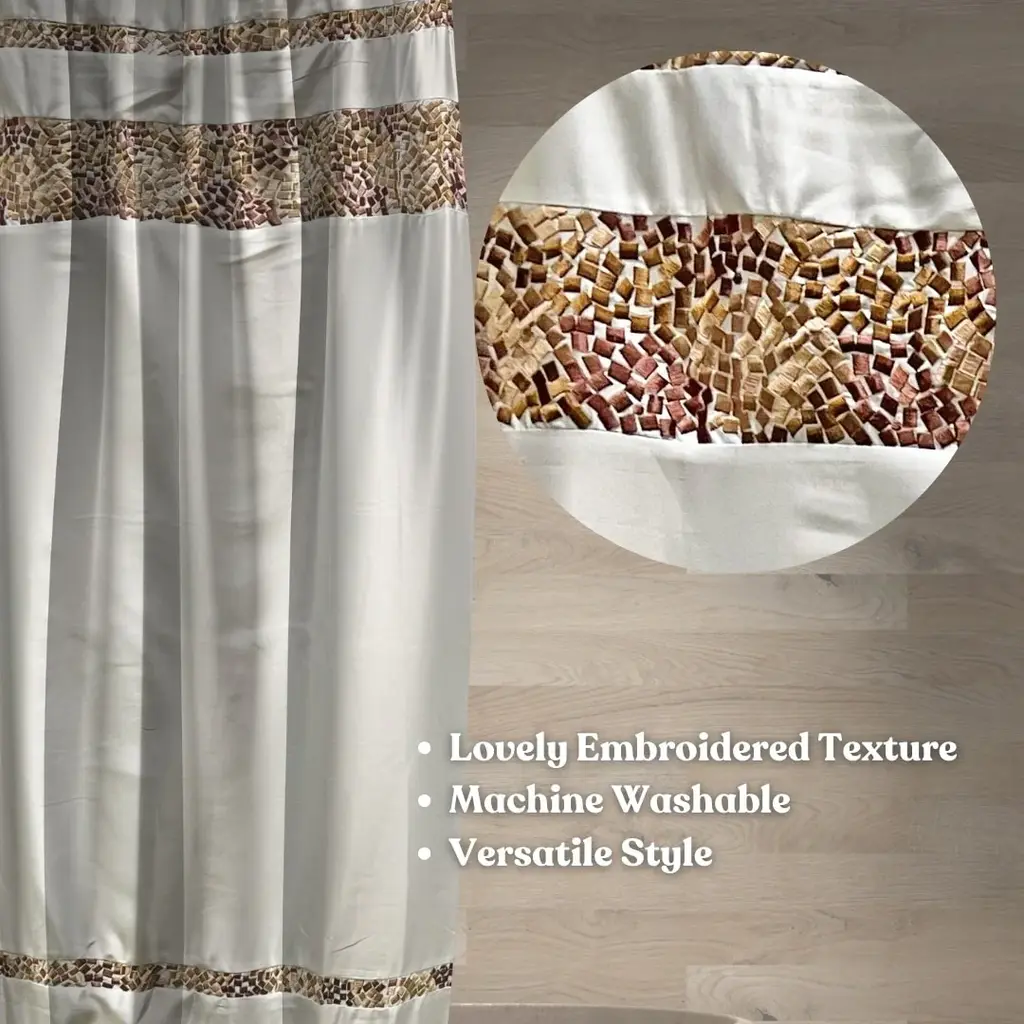 Spa Tile White Soft Fabric Shower Curtain With Multicolor Embroidered Tile Bands - 72"x84" - Brown
