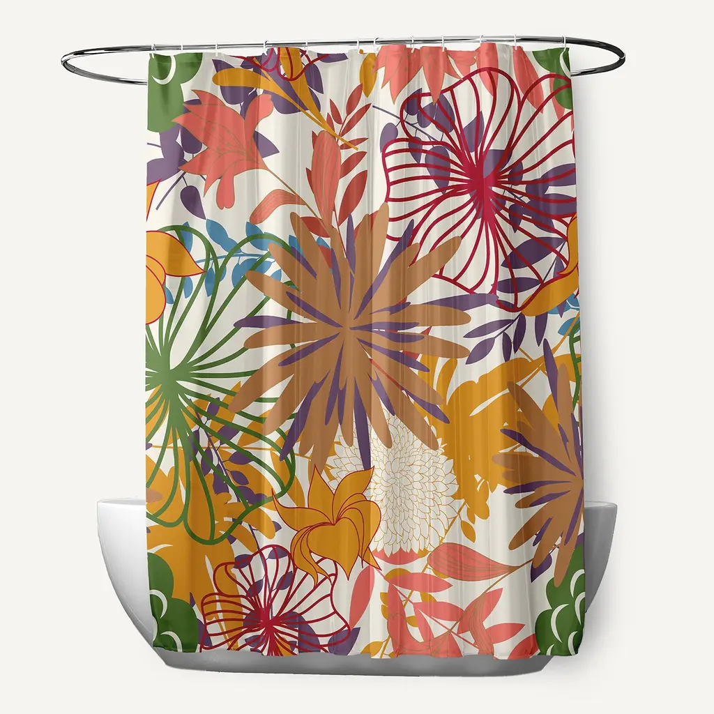 Beautify your home with a Spring Garden Shower Curtain from our Flower Power Collection. This durable and decorative polyester fabric shower curtain has a single sided design and a buttonhole top to easily refresh your bath for each season. It is made of 100% polyester that is quick drying. When it needs to be washed, just toss it into your washing machine, and then tumble dry. Everyone will enjoy the color brought to your bath space by this decorative shower curtain! With floral designs and partner patterns, your home decor will be sunny and vibrant.