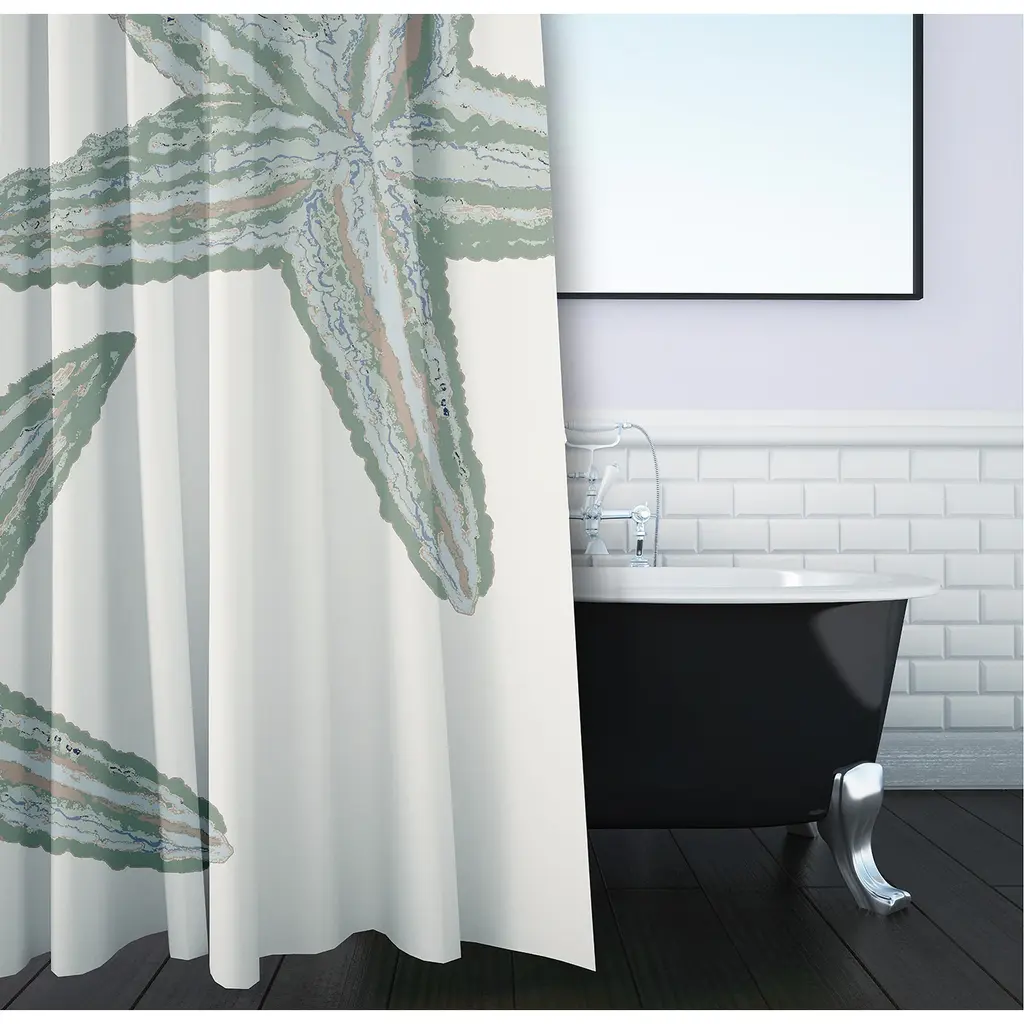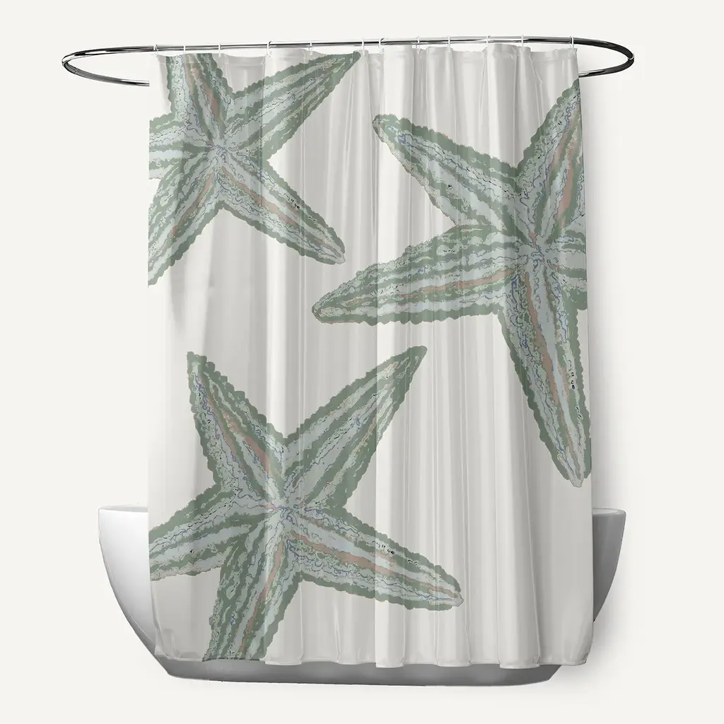 With the combination of sunny colors and beach style, you will love the Starfish Constellation Shower Curtain from our Beach Vacation Collection. Your bath decor will be enlivened with this shower curtain's coastal vibe! This and all designs from our Beach Vacation Collection will bring waves of joy to your home decor.Durable PolyesterQuick DryingMachine Washable70" w x 73" h12 button holes for hook placement