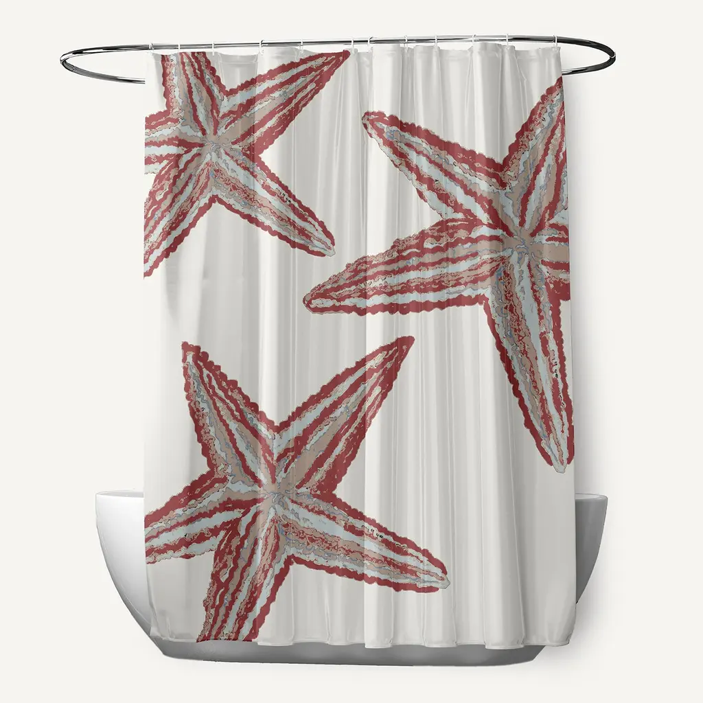 With the combination of sunny colors and beach style, you will love the Starfish Constellation Shower Curtain from our Beach Vacation Collection. Your bath decor will be enlivened with this shower curtain's coastal vibe! This and all designs from our Beach Vacation Collection will bring waves of joy to your home decor.Durable PolyesterQuick DryingMachine Washable70" w x 73" h12 button holes for hook placement