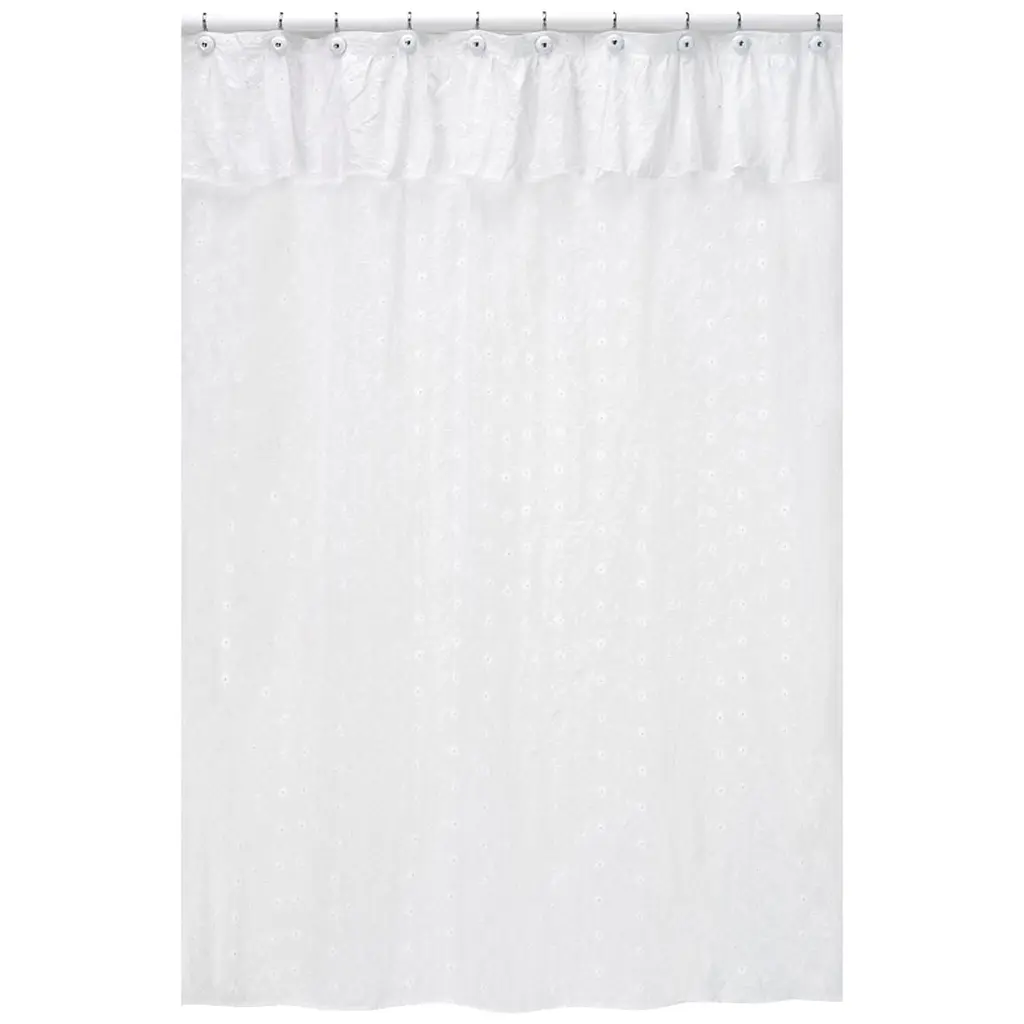Add a touch of elegance to your bathroom with this Sweet Jojo Designs White Eyelet Shower Curtain. The solid white curtain features multiple eyelets for a stylish look that complements any home decor. Crafted from durable brushed microfiber fabrics, it is easy to maintain and can be machine washed with minimal care.Features:Care Instructions: