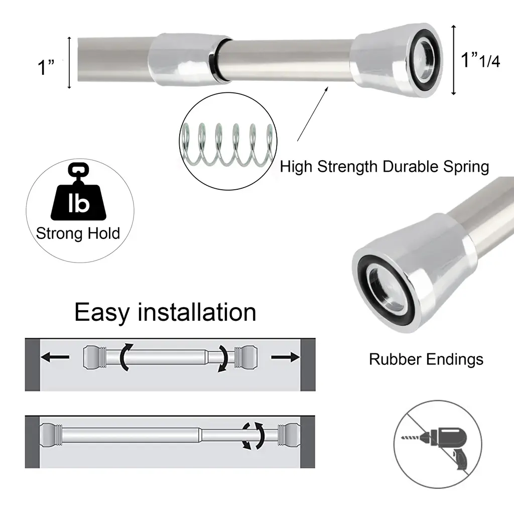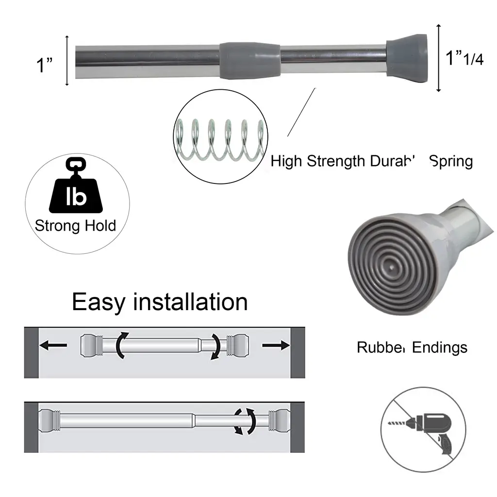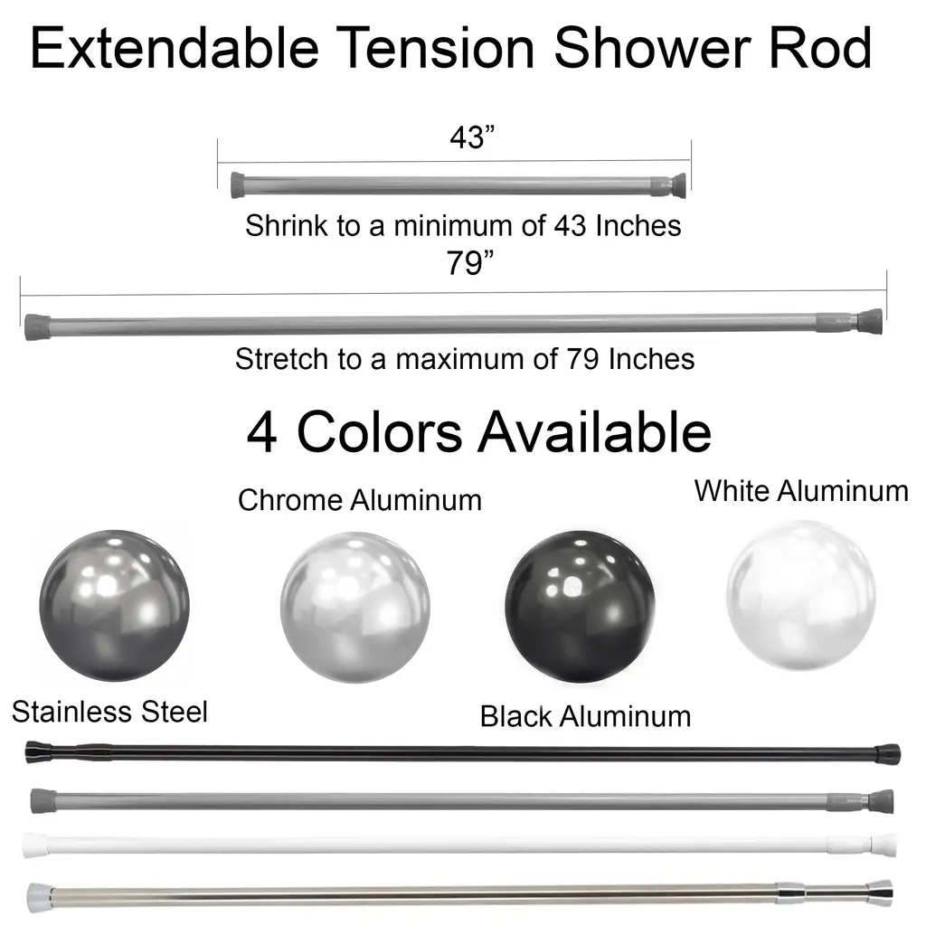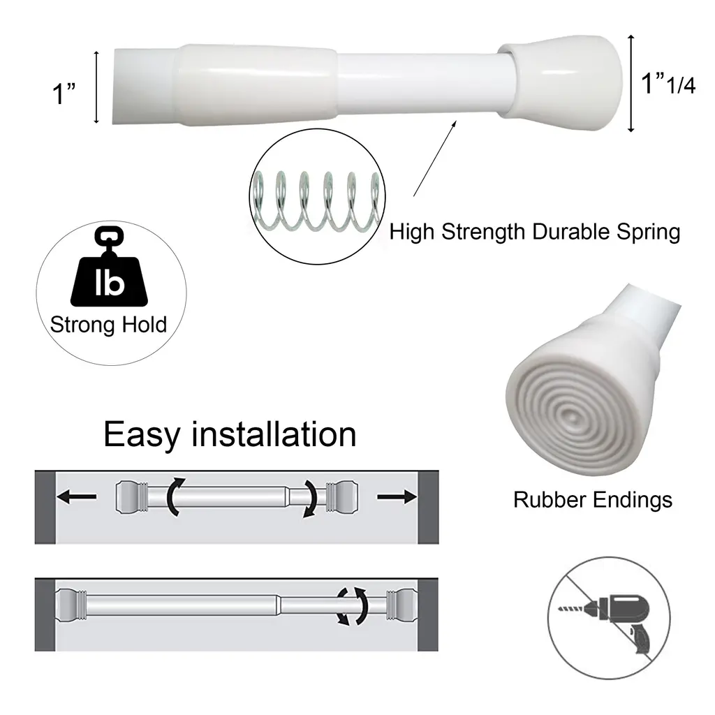 Looking for the best tension rod in your bathroom? Just have a look at our Tension Adjustable Shower Curtain Rod . A shower curtain adds character to your bathroom, but getting the best shower curtain rod to hold it is just as important. Not only must a shower curtain rod be sturdy enough to support the weight of the curtain, but it should also complement the look of the bathroom. Your choice of shower curtain rod will depend on the size and configuration of your shower or tub/shower combo. But also has to match with your bathroom decor and the weight of the shower curtain you plan to use. At Evideco, we offer a large selection of rods to fit your needs. You can choose straight shower curtain rods, either wall-mounted or spring-loaded. Or other shapes like square, L-shaped, and round shower curtain rods, ideal for open showers and freestanding tub/shower combinations. Our rods are made of aluminum or stainless steel and come with a water-resistant coating to reduce rust and corrosion risk. Versatile, our shower rods fit showers, bath tubs, closets, entryways or room divider. This Tension Adjustable Shower Curtain Rod is easy to install and avoid any drilling into the walls, a perfect choice if you are a renter or not heavy on hammer and saw."