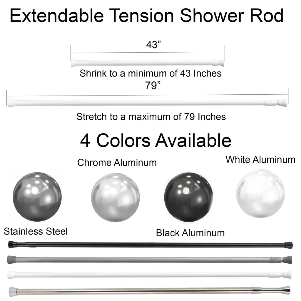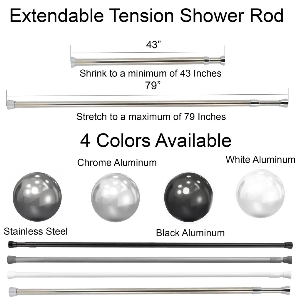 Tension Adjustable Shower Curtain Rod 43-79 Inches - Black