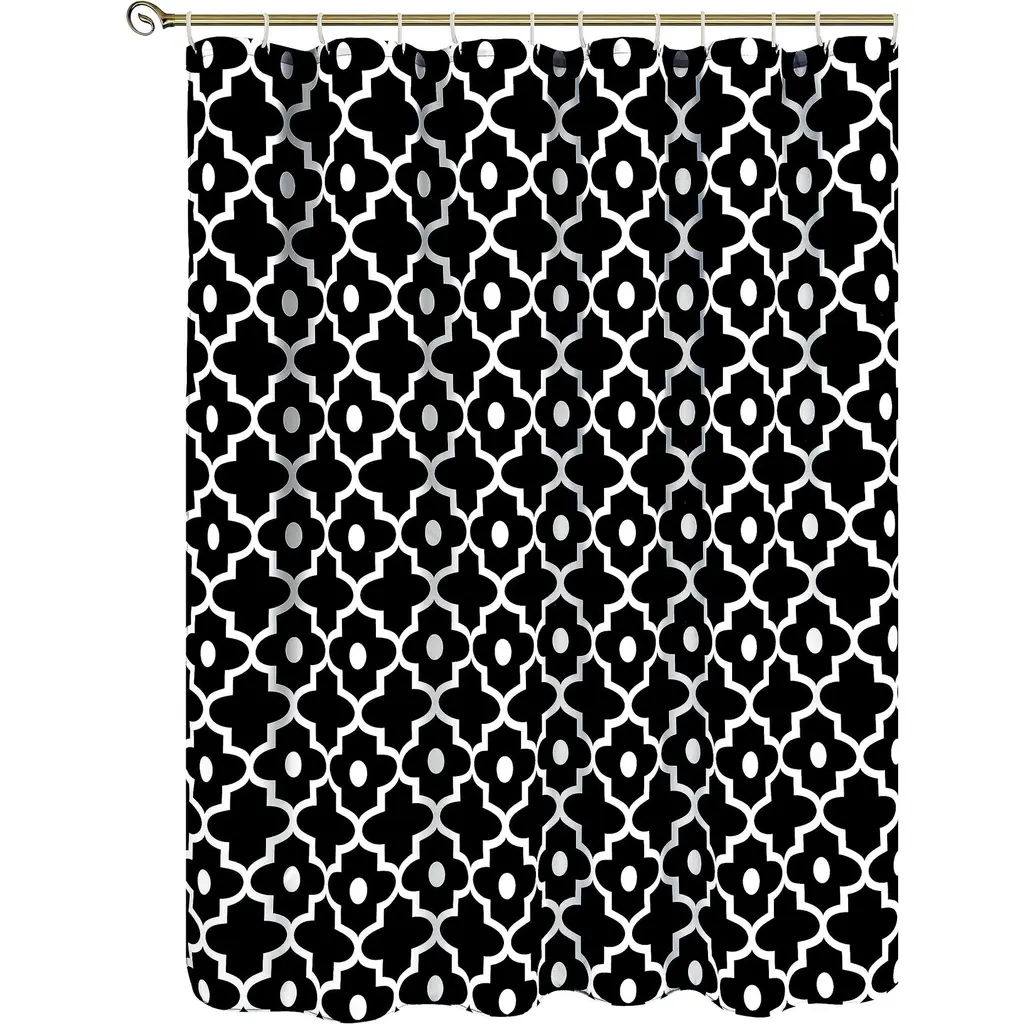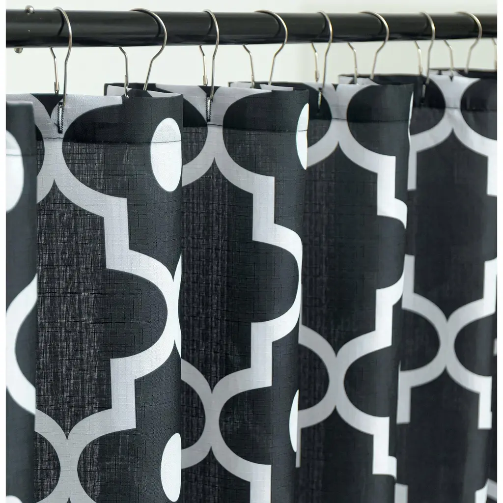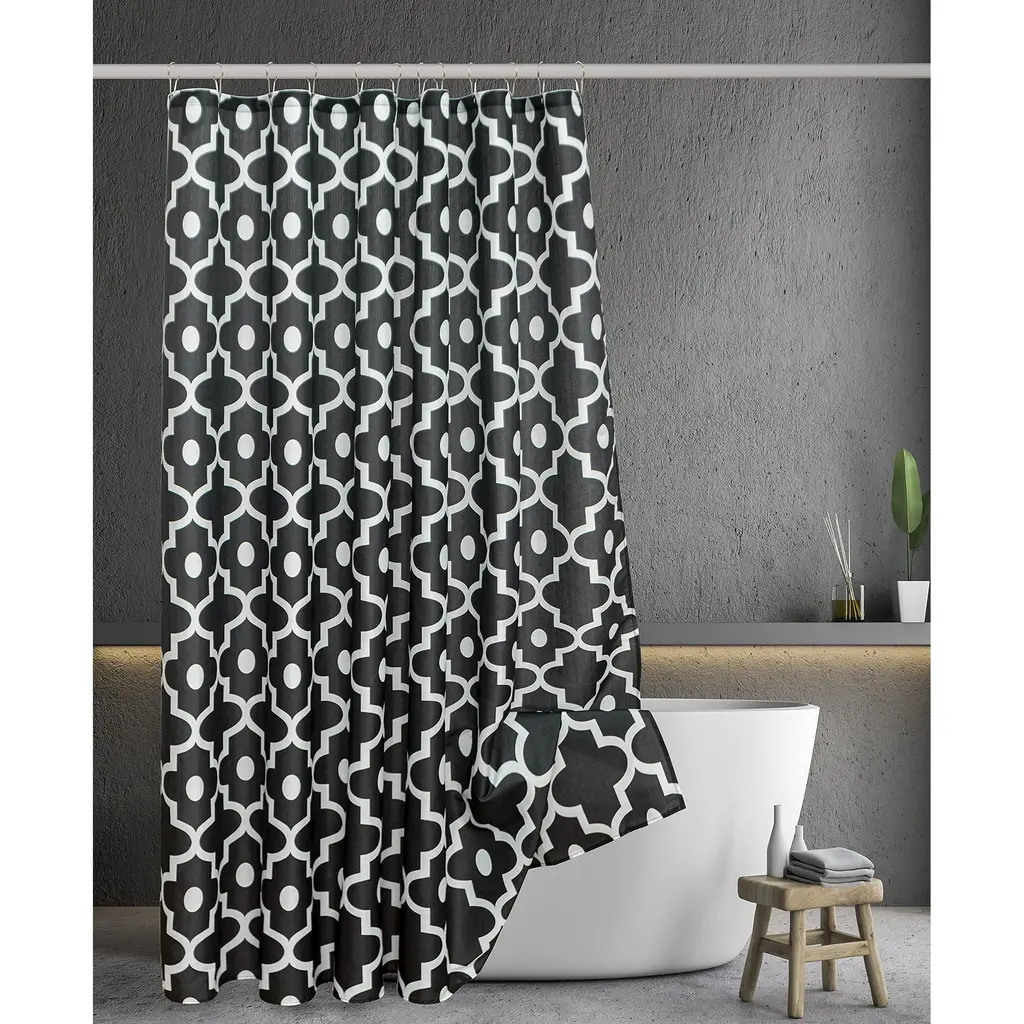 Textured Fabric Shower Curtains 72" X 72", Black Morocco Pearl Printed - Multi