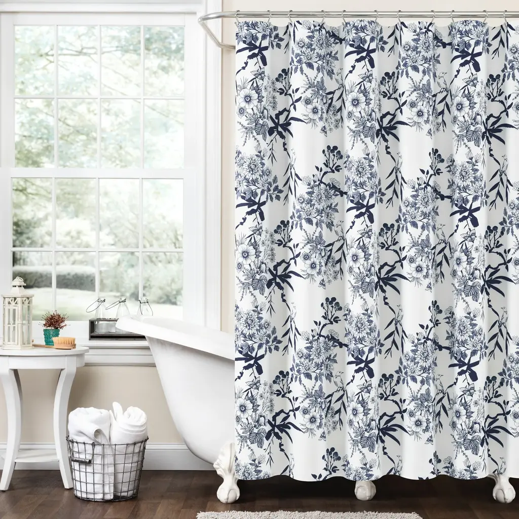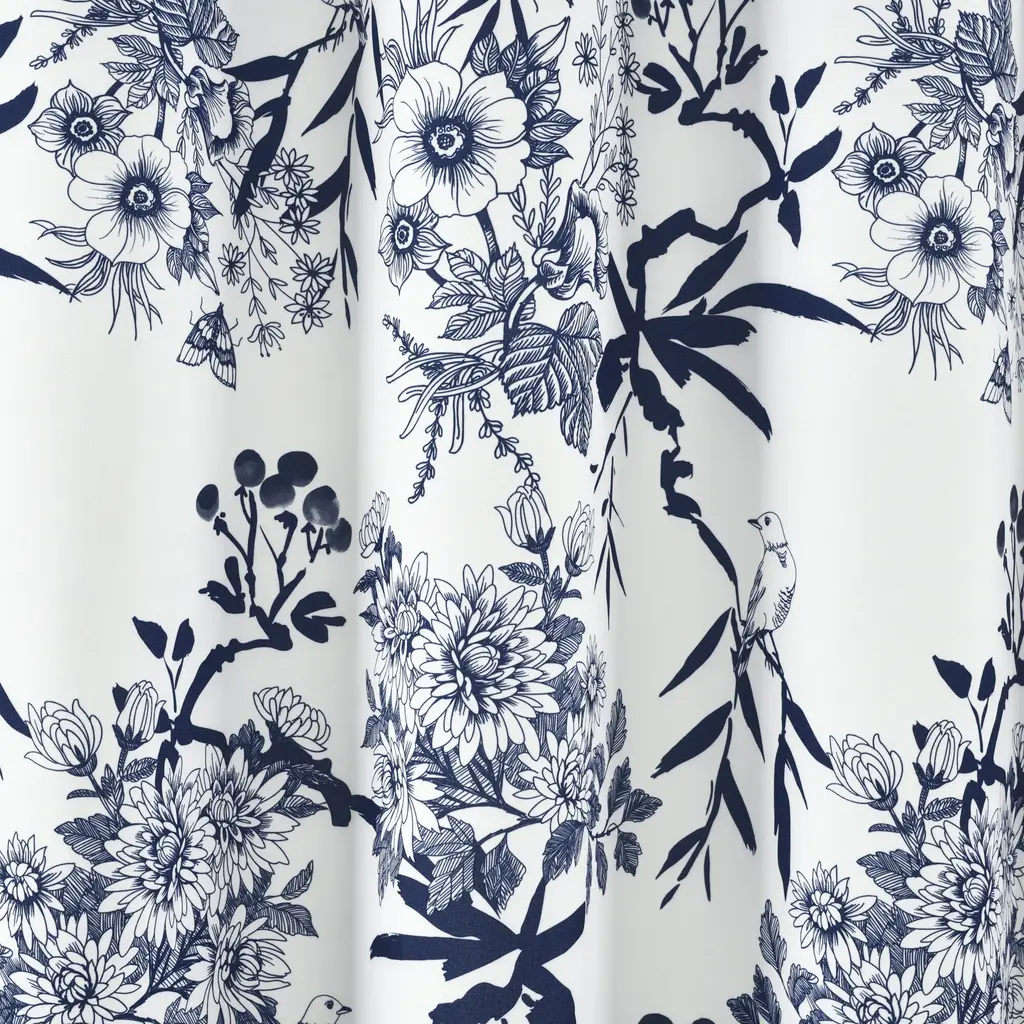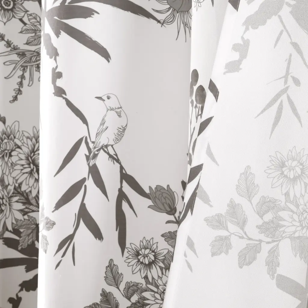 Perfectly suited to country cottage decor, this shower curtain lends a lovely and whimsical touch to any bathroom. The graceful floral pattern is embellished with little birds resting on branches for a lively look sure to elevate decor in an instant.Features: 100-percent polyesterFloral and bird patternGrey and white colorsMachine wash cold, gentle cycleTumble dry low, light iron if needed72 inches long x 72 inches wide