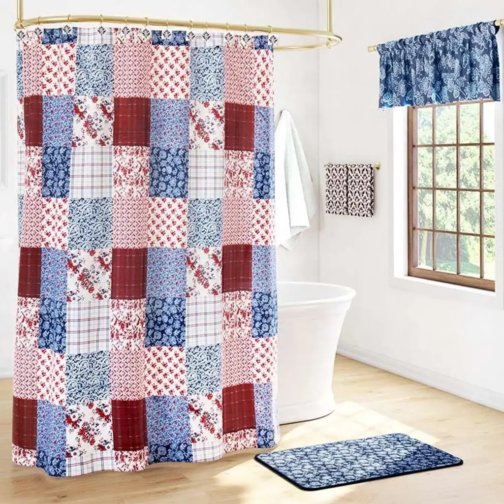Redo your bathroom with the great value of the Callisi Americana Shower Curtain. The red, white and blue patchwork quilt look has a patriotic flair that looks stylish in any season. Polyester 72" sq. Machine washable Imported