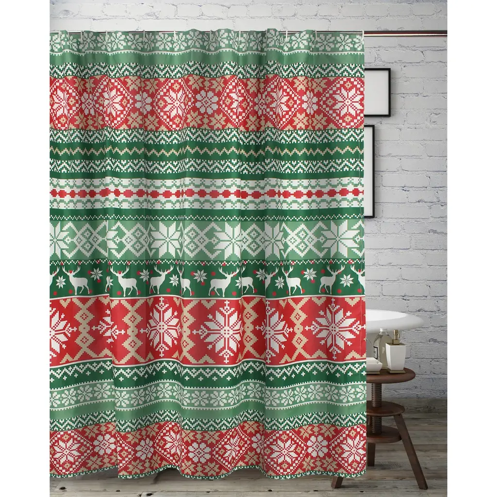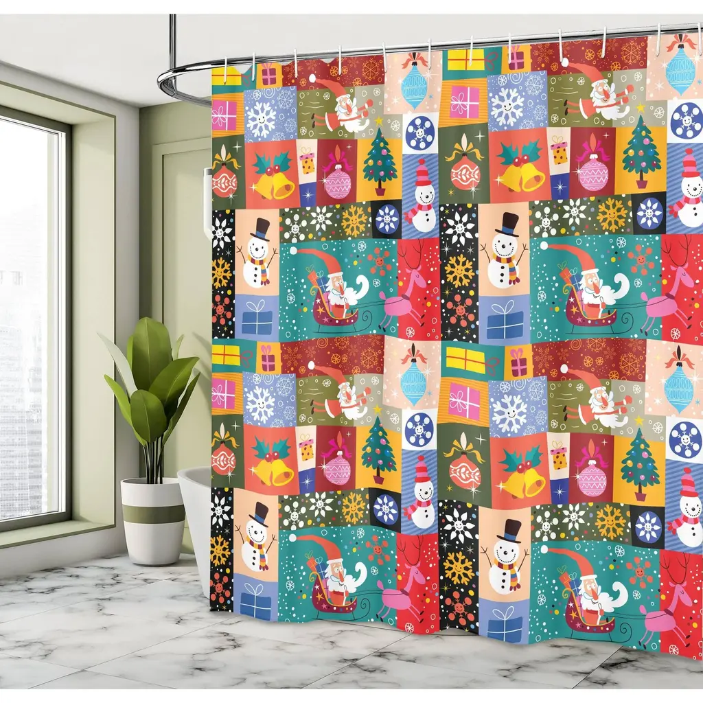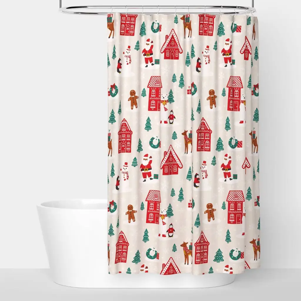Transform your space into a sweet escape with the Gingerbread Patchwork Shower Curtain. Adorable design features red and green plaid, gingerbread houses and candy canes. 72" sq. Polyester Machine care Imported