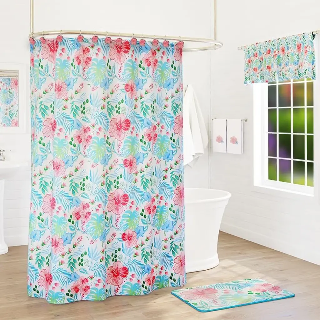 The Tropical Garden Bath Collection takes your bathroom and turns it into a private tropical paradise. This ensemble brings the vibrant colors and lush designs of a tropical garden right into your home, ensuring every bath feels like a mini-vacation. A Shower Curtain adorned with exquisite tropical flowers sets the tone for a truly refreshing ambianceShower Curtain Polyester 72"W x 70"L Machine washable