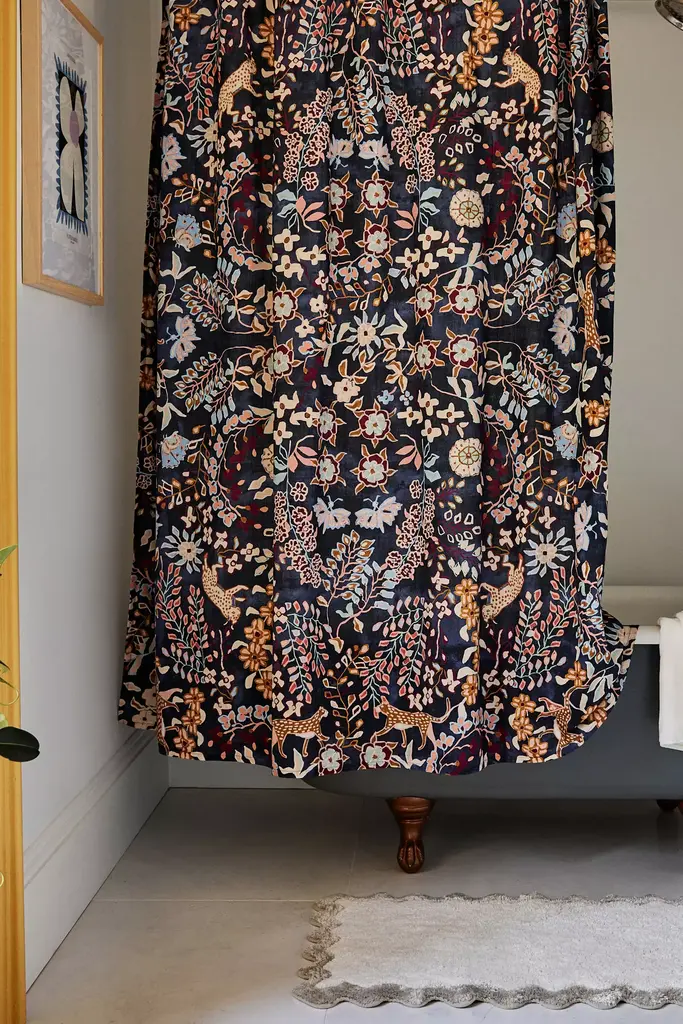 Overflowing with elaborate colors and prints, this shower curtain adds vibrant personality to any bathroom.