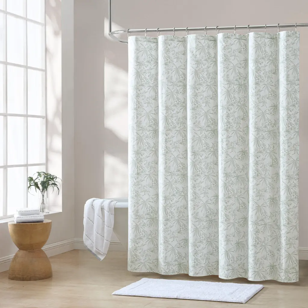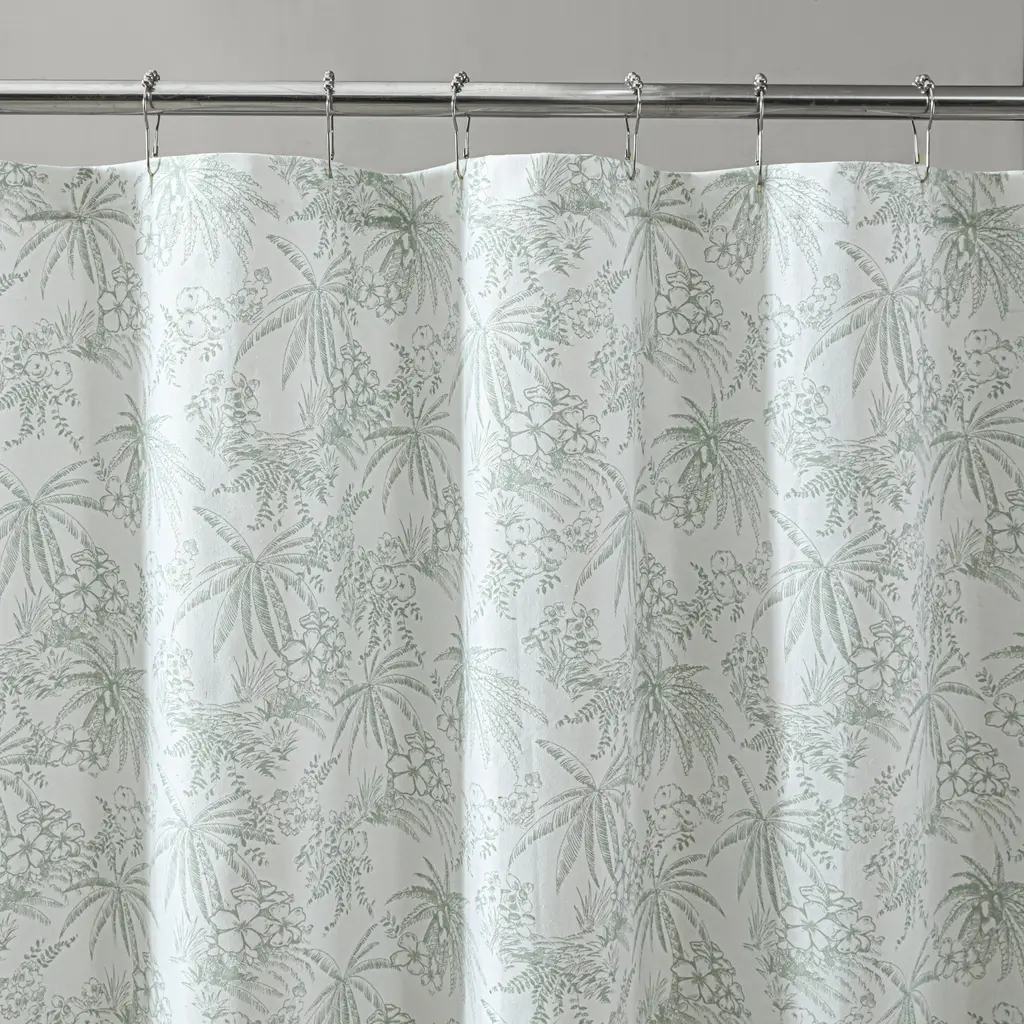 Tommy Bahama Pen And Ink Palm Cotton Shower Curtain - Green