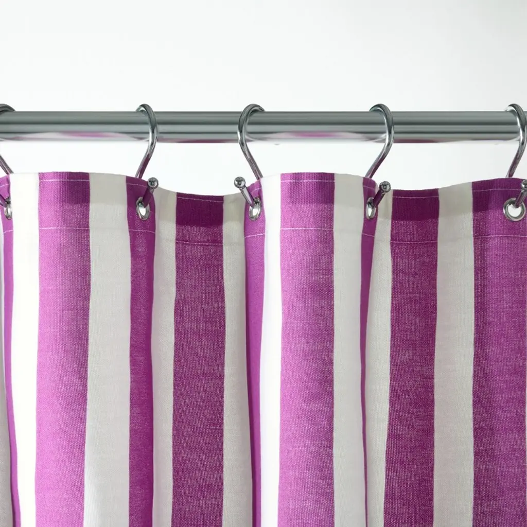 Town & Country Play Adeline Offset Stripe Cotton-rich Breathable Fabric Shower Curtain With Anti-rust Grommets, Purple/green/blue, 70"x72"