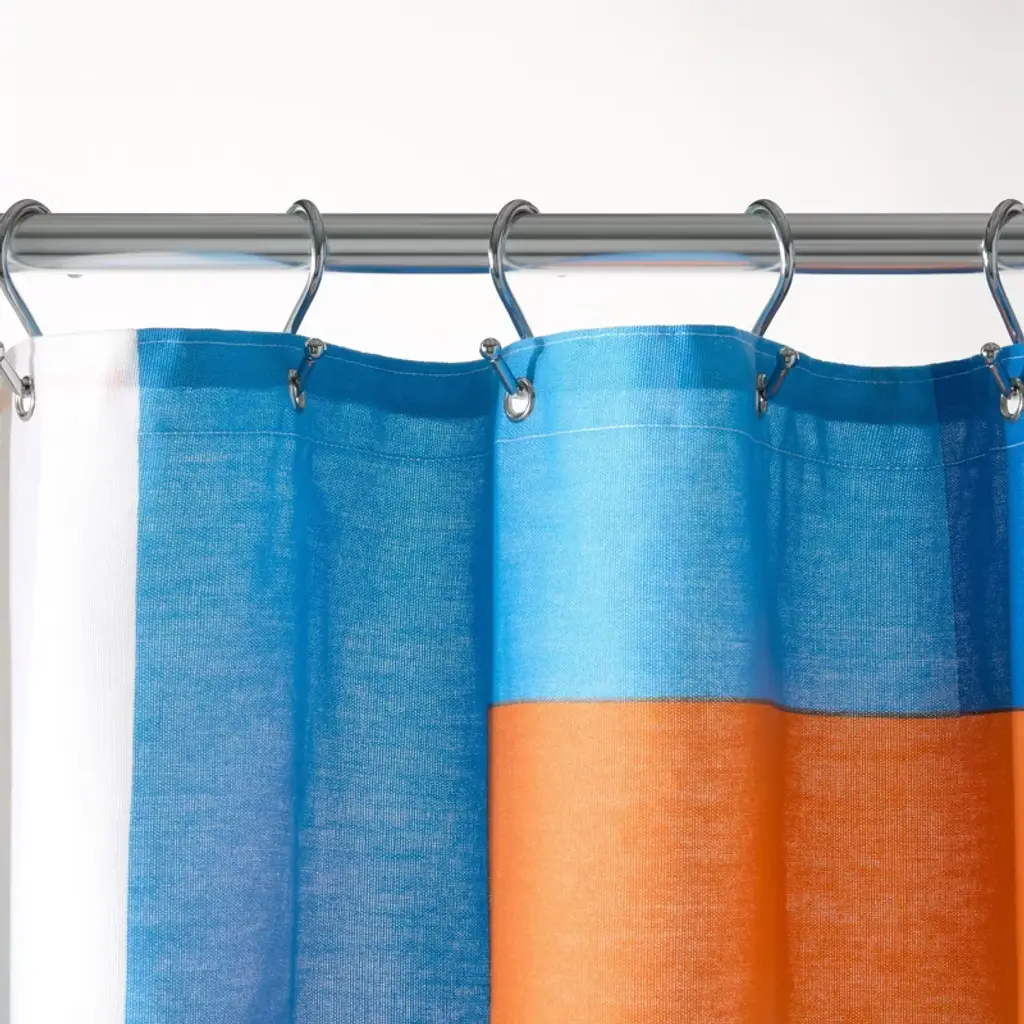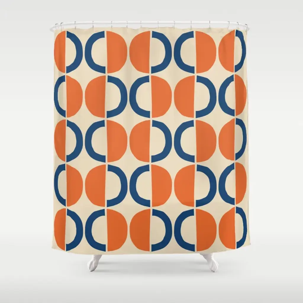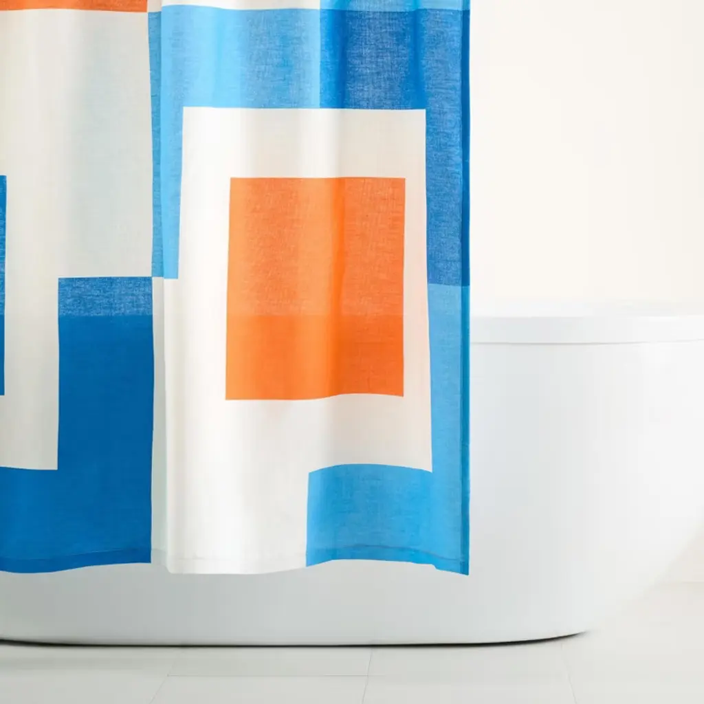 Town & Country Play Lucy Mid Century Squares Cotton-rich Breathable Fabric Shower Curtain With Anti-rust Grommets, White/orange/blue, 70"x72"