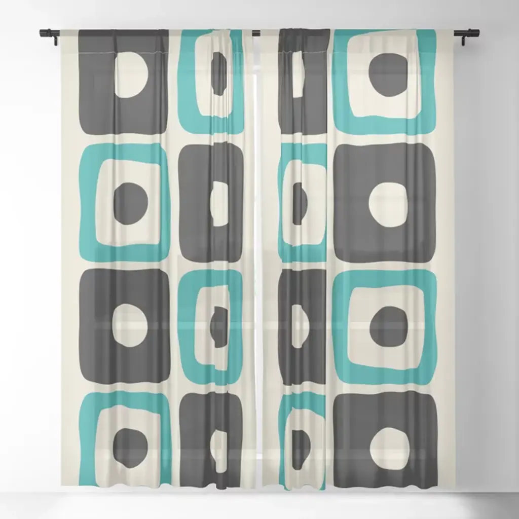 Go bold with your bathroom design by adding a Town & Country Play shower curtain into your space! With vibrant colors and a playful pattern, this Cotton-rich, fabric shower curtain will instantly transform any shower or bathroom. The Lucy Mid-Century Squares 70â€ÂÂx72†shower curtain offers a colorful, retro look with durability to last. Made with strong, reinforced top hem stitching and anti-rust grommets, this geometric shower curtain is ideal for busy households and kid’s bathrooms. Machine washable as needed for easy care. Use with waterproof shower liner recommended.