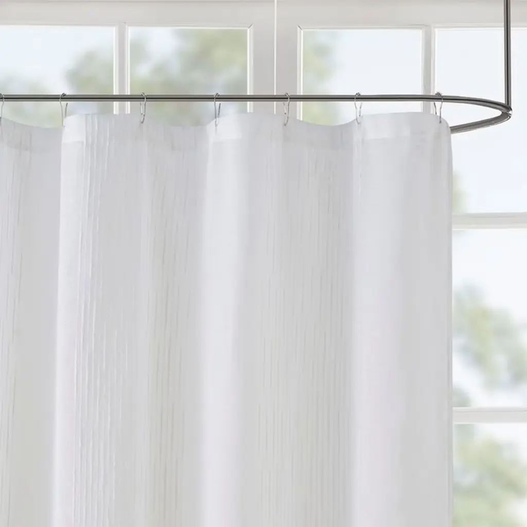Add a casual update to your bathroom with the Anna sheer shower curtain. A striped texture within this shower curtain provides the perfect backdrop for the soft grey adding dimension to your space. As this curtain is sheer, you may want to use an opaque liner to give a more solid look.