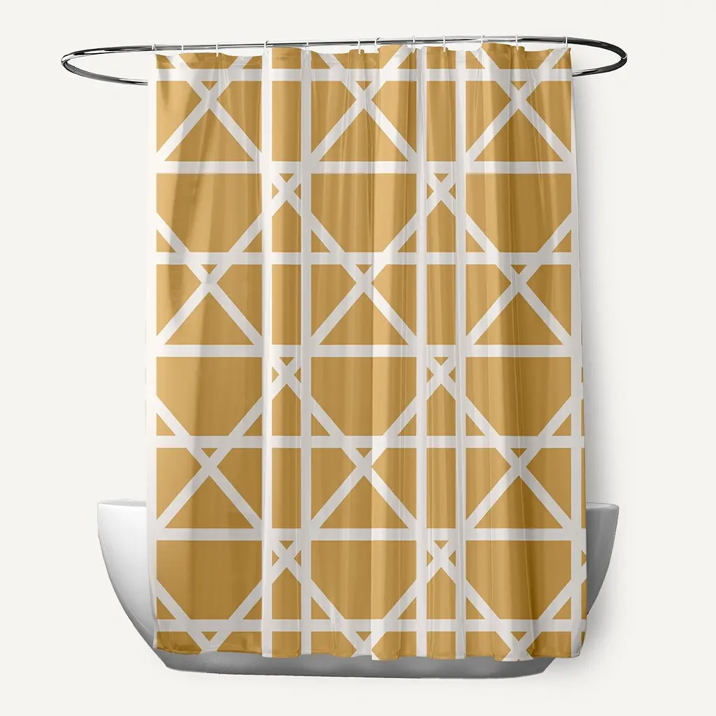 Change up your home decor for the fall season with the Blue Trellis shower curtain from our Fall Cascades Collection. Everyone will enjoy the earthy aesthetics brought to your bath space by this decorative shower curtain! The warm tones of this collection will envelop you in comfort, and delight you throughout the season.Features:Durable Polyester FabricQuick DryingMachine Washable71" x 74"12 Button Holes for hook placementPattern: GeometricStyle: IndustrialColor Choices: Blue, Blue, Dark Grey, Orange, Yellow
