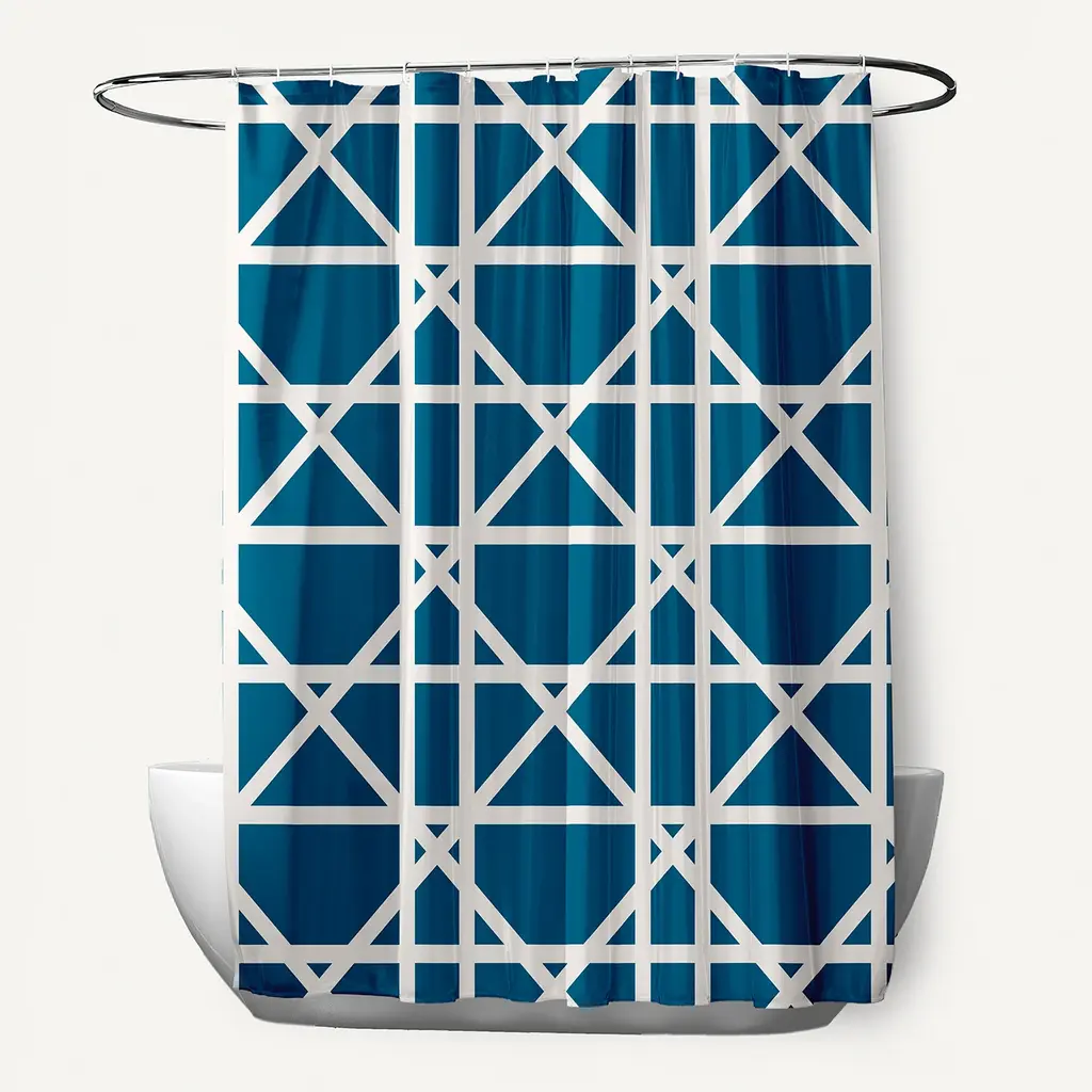 Trellis Geometric Print Shower Curtain (71 X 74) - Blue