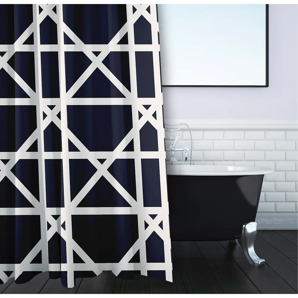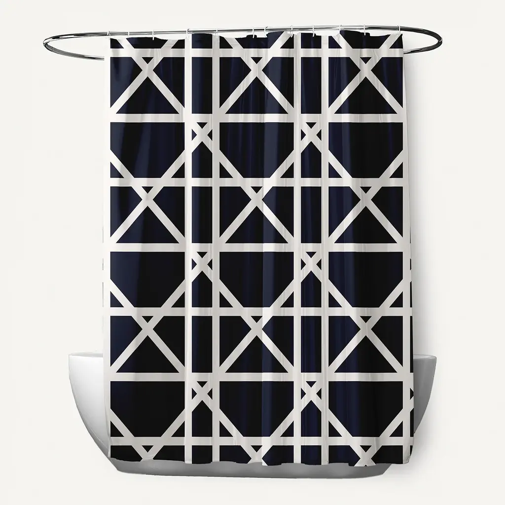 Change up your home decor for the fall season with the Blue Trellis shower curtain from our Fall Cascades Collection. Everyone will enjoy the earthy aesthetics brought to your bath space by this decorative shower curtain! The warm tones of this collection will envelop you in comfort, and delight you throughout the season.Features:Durable Polyester FabricQuick DryingMachine Washable71" x 74"12 Button Holes for hook placementPattern: GeometricStyle: IndustrialColor Choices: Blue, Blue, Dark Grey, Orange, Yellow
