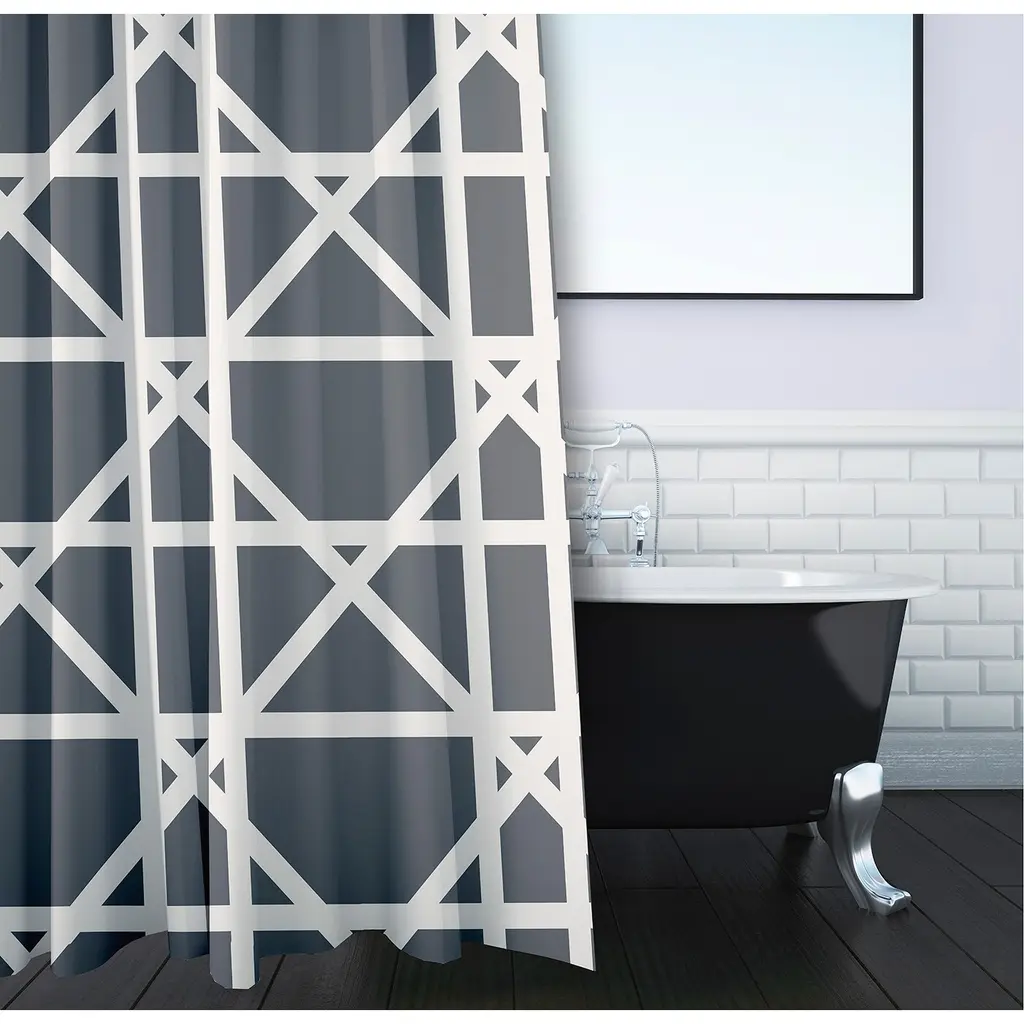 Trellis Geometric Print Shower Curtain (71 X 74) - Navy