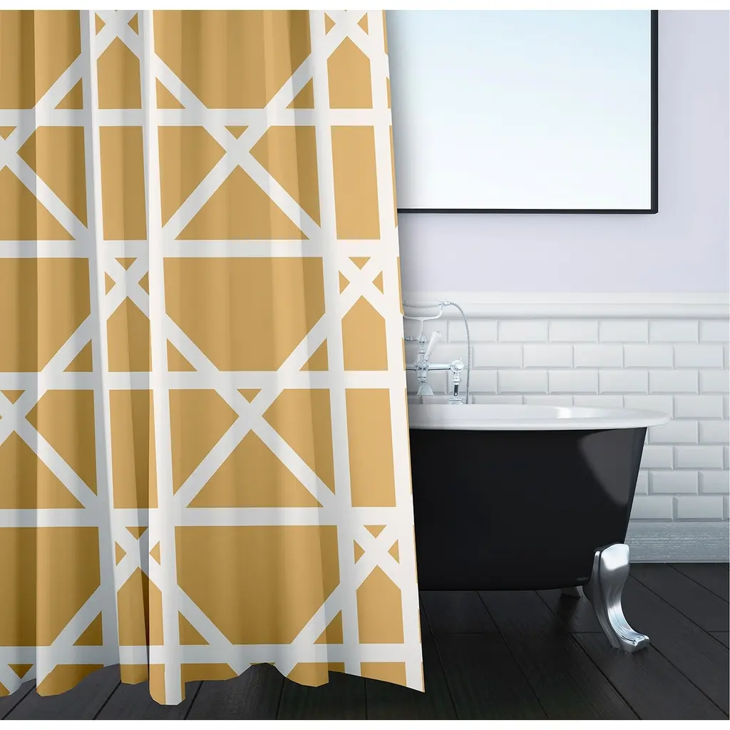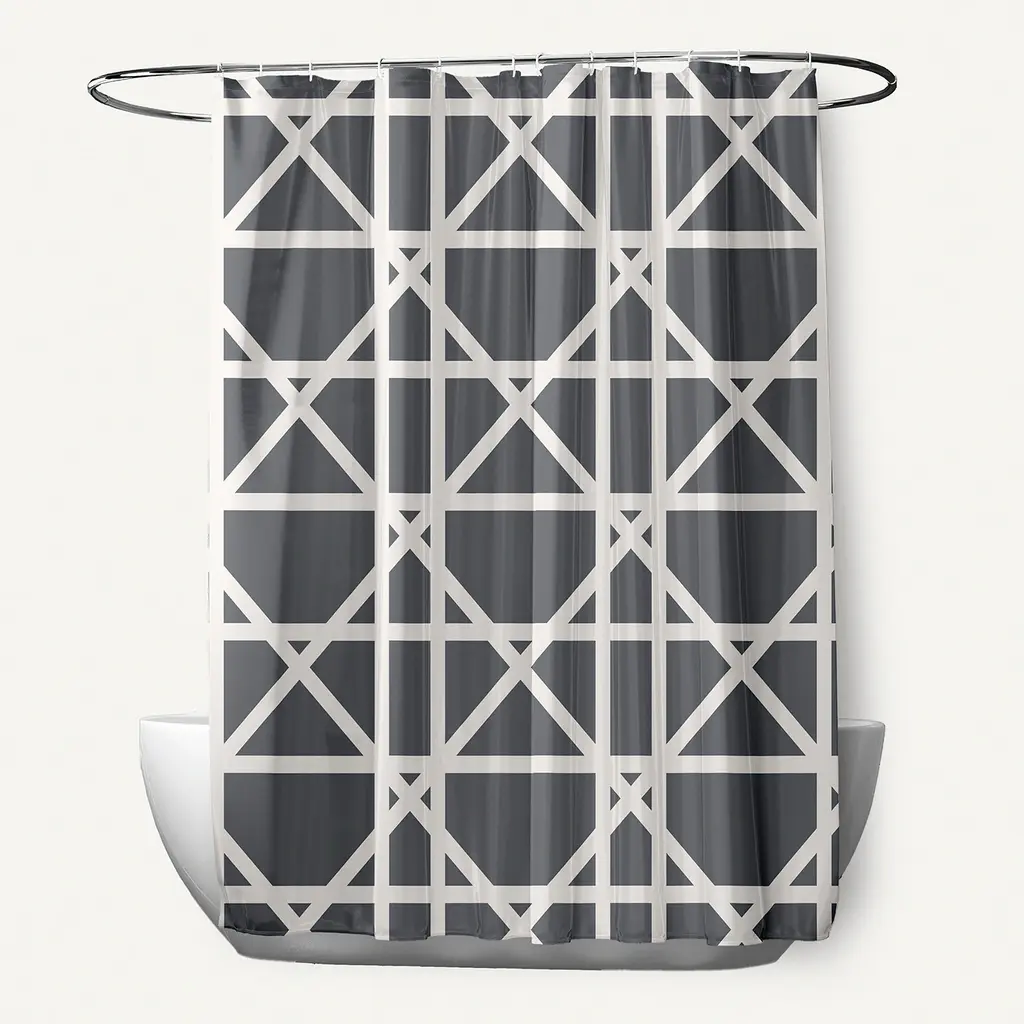Change up your home decor for the fall season with the Blue Trellis shower curtain from our Fall Cascades Collection. Everyone will enjoy the earthy aesthetics brought to your bath space by this decorative shower curtain! The warm tones of this collection will envelop you in comfort, and delight you throughout the season.Features:Durable Polyester FabricQuick DryingMachine Washable71" x 74"12 Button Holes for hook placementPattern: GeometricStyle: IndustrialColor Choices: Blue, Blue, Dark Grey, Orange, Yellow