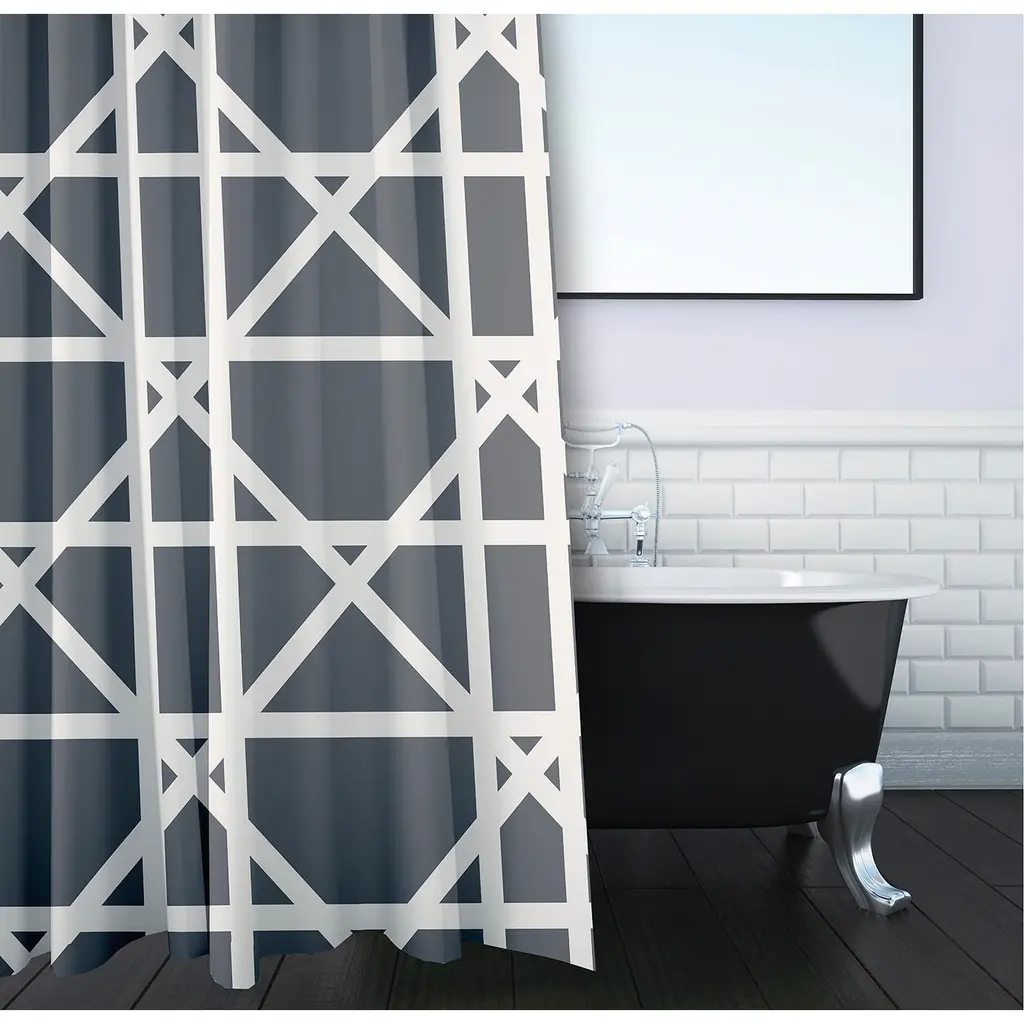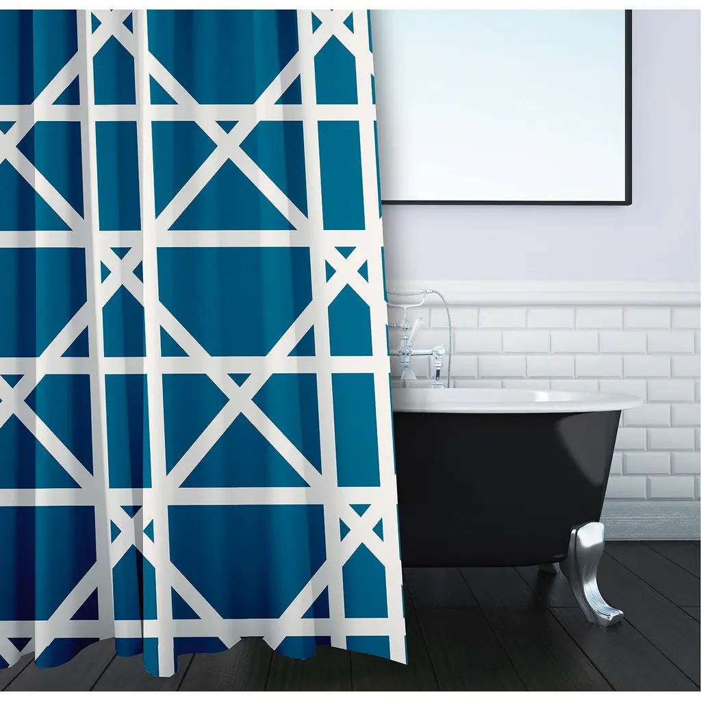 Change up your home decor for the fall season with the Blue Trellis shower curtain from our Fall Cascades Collection. Everyone will enjoy the earthy aesthetics brought to your bath space by this decorative shower curtain! The warm tones of this collection will envelop you in comfort, and delight you throughout the season.Features:Durable Polyester FabricQuick DryingMachine Washable71" x 74"12 Button Holes for hook placementPattern: GeometricStyle: IndustrialColor Choices: Blue, Blue, Dark Grey, Orange, Yellow