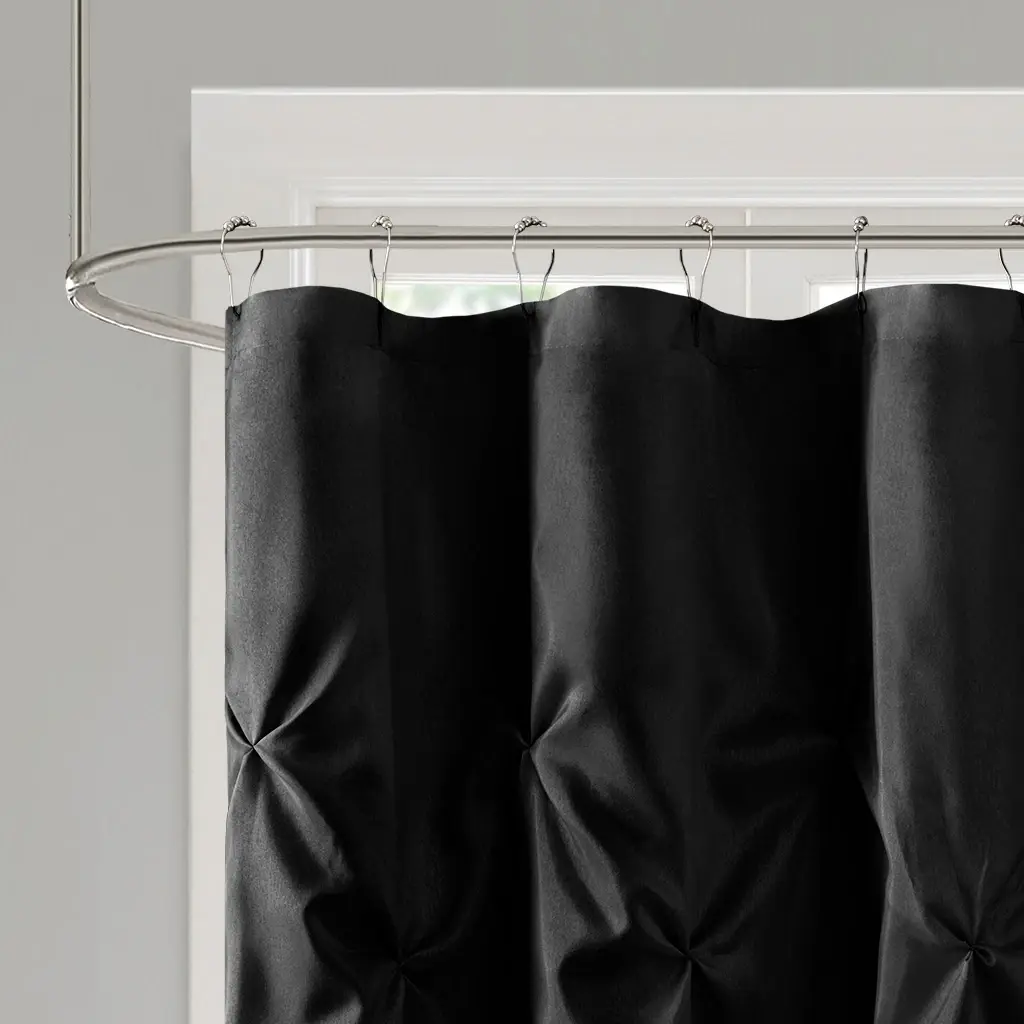 Update your bathroom instantly with the Laurel Shower Curtain. Its soft black color paired with large tufting creates a contemporary look while adding beautiful texture to your space. Made from 100% polyester polyoni, this semi-sheer shower curtain is lightweight with a nice soft sheen and machine washable for easy care. A water repellant liner is not included and highly recommended. Complete the collection with coordinate bedding, available and sold separately.Features:Specification: