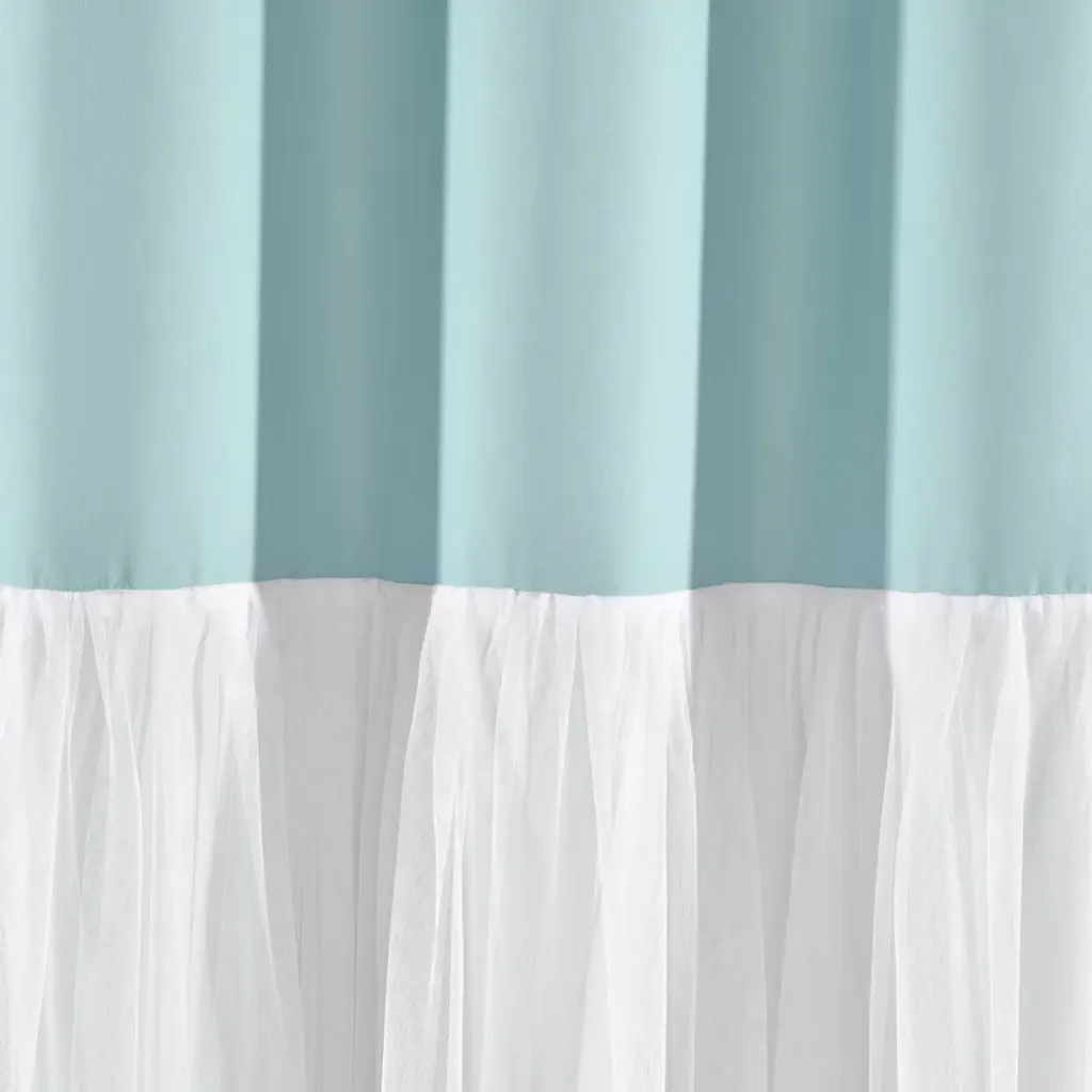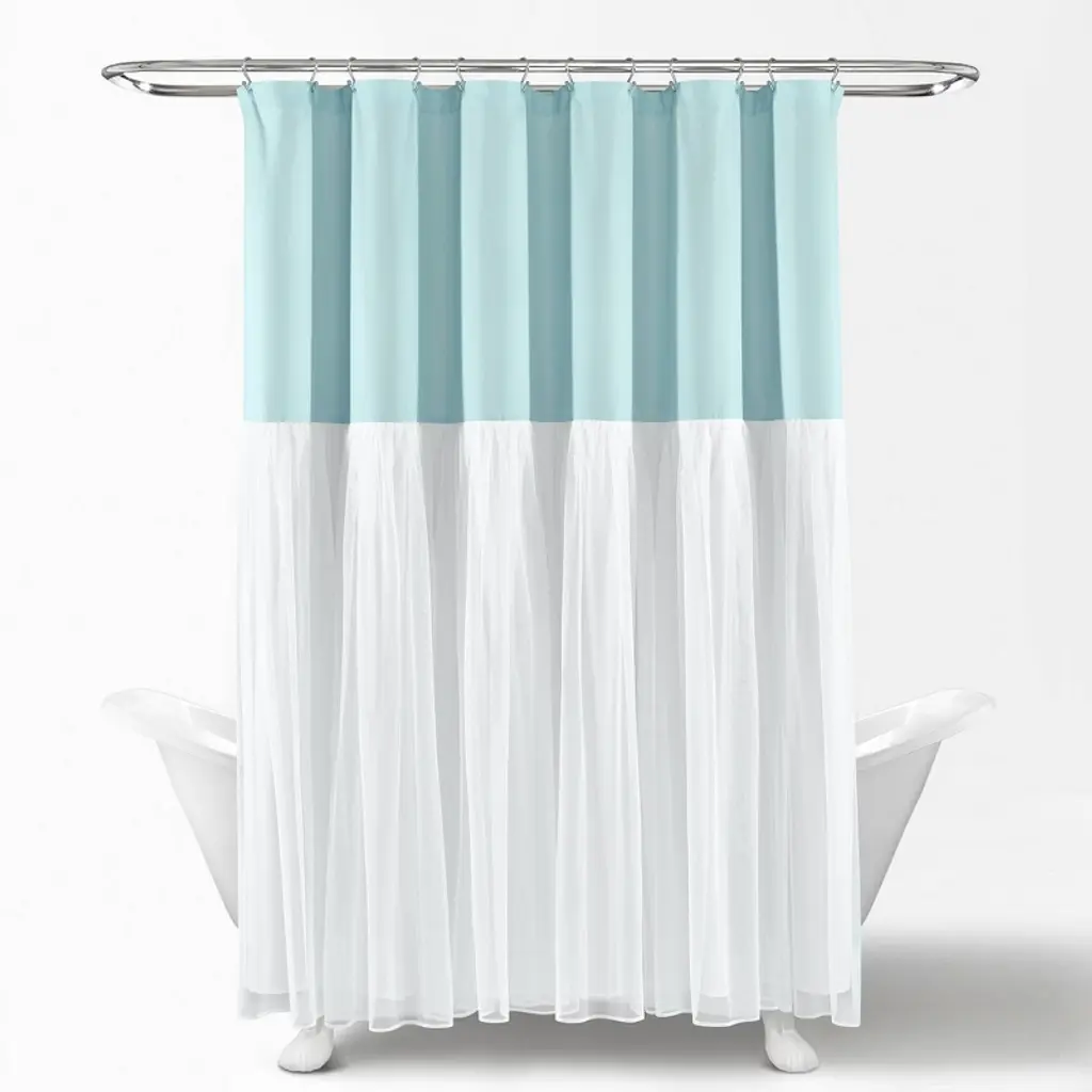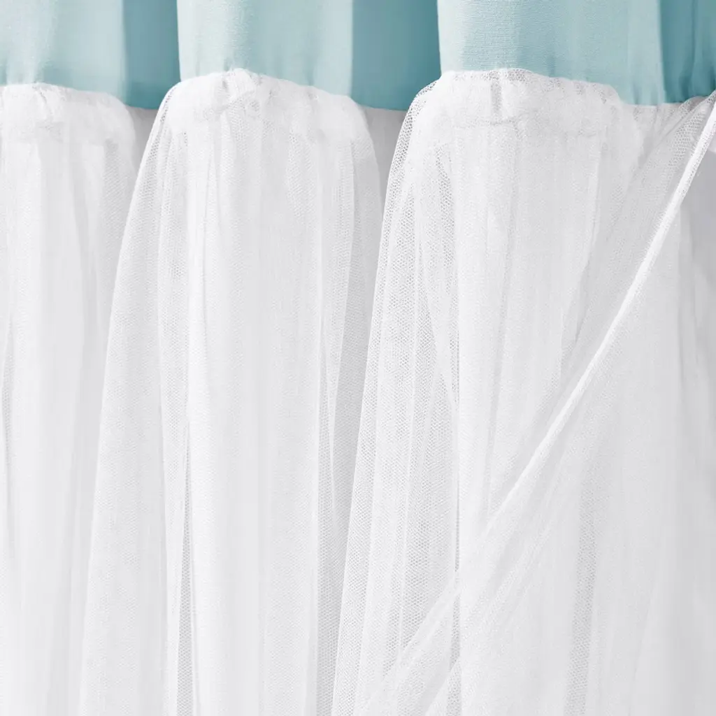 Tulle Skirt Color Block Shower Curtain Aqua/white - Lush Décor: Polyester Microfiber, Buttonhole Top, Machine Washable