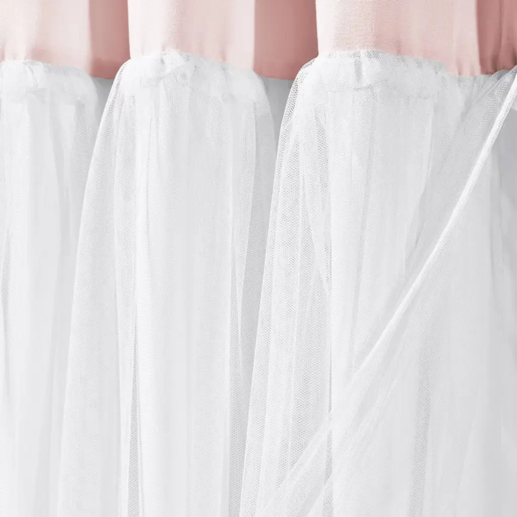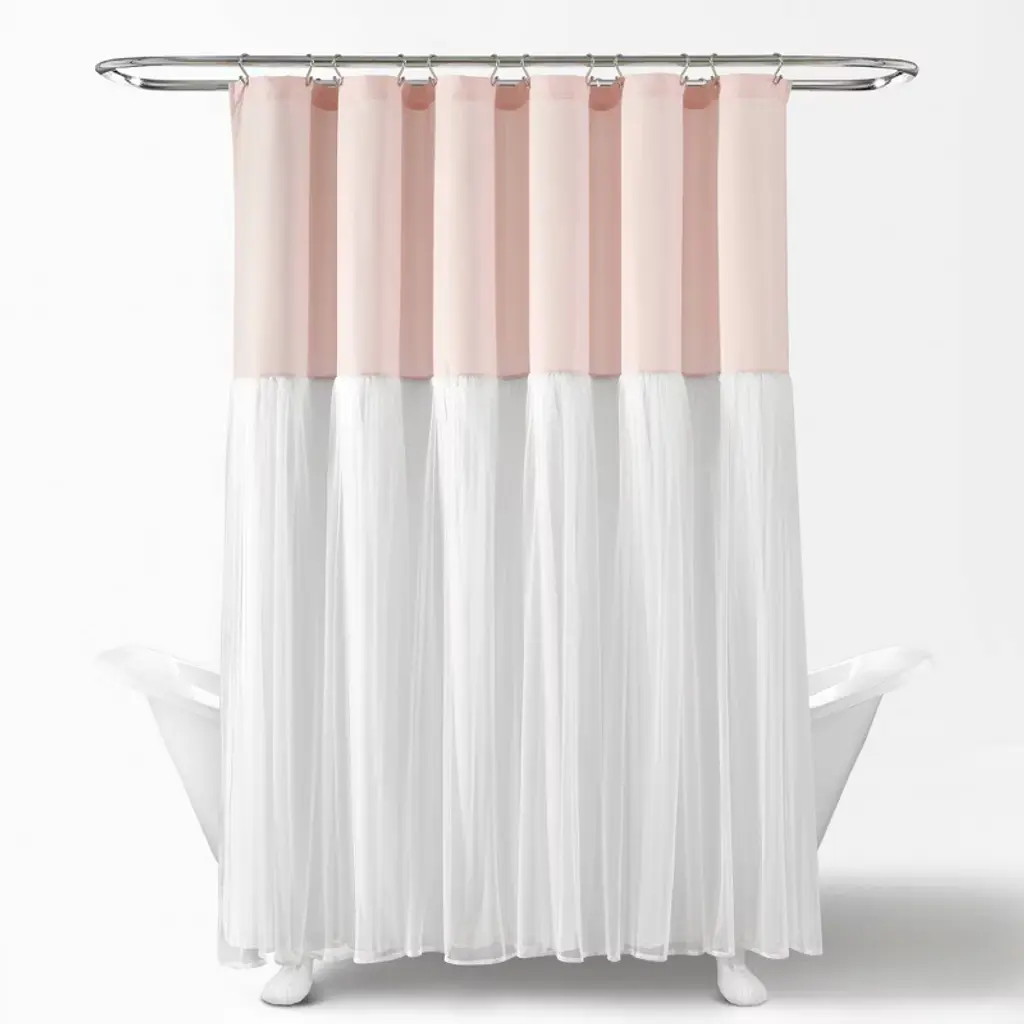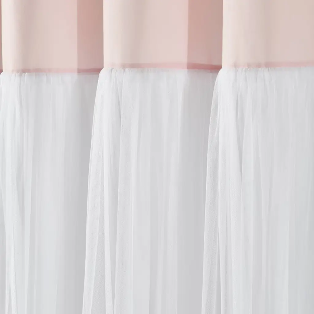 Tulle Skirt Color Block Shower Curtain Blush/white - Lush Décor: Polyester Microfiber, Machine Washable, Buttonhole Top