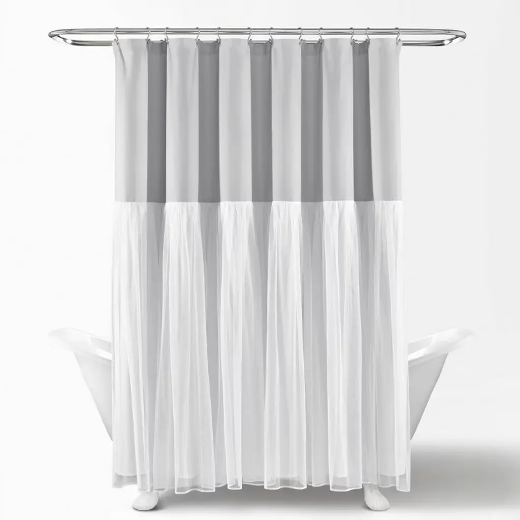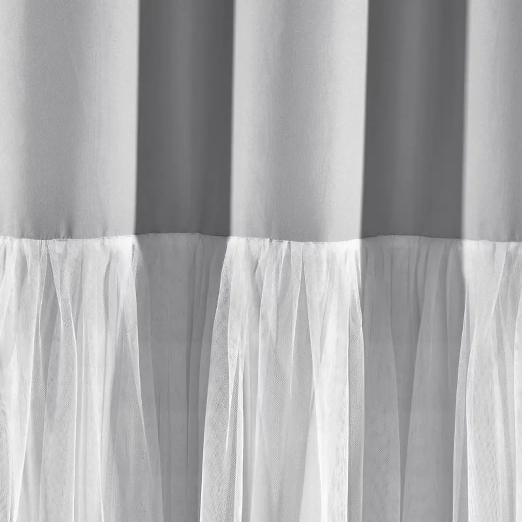Tulle Skirt Color Block Shower Curtain Gray/white - Lush Décor: Polyester Microfiber, Buttonhole Top, Machine Washable