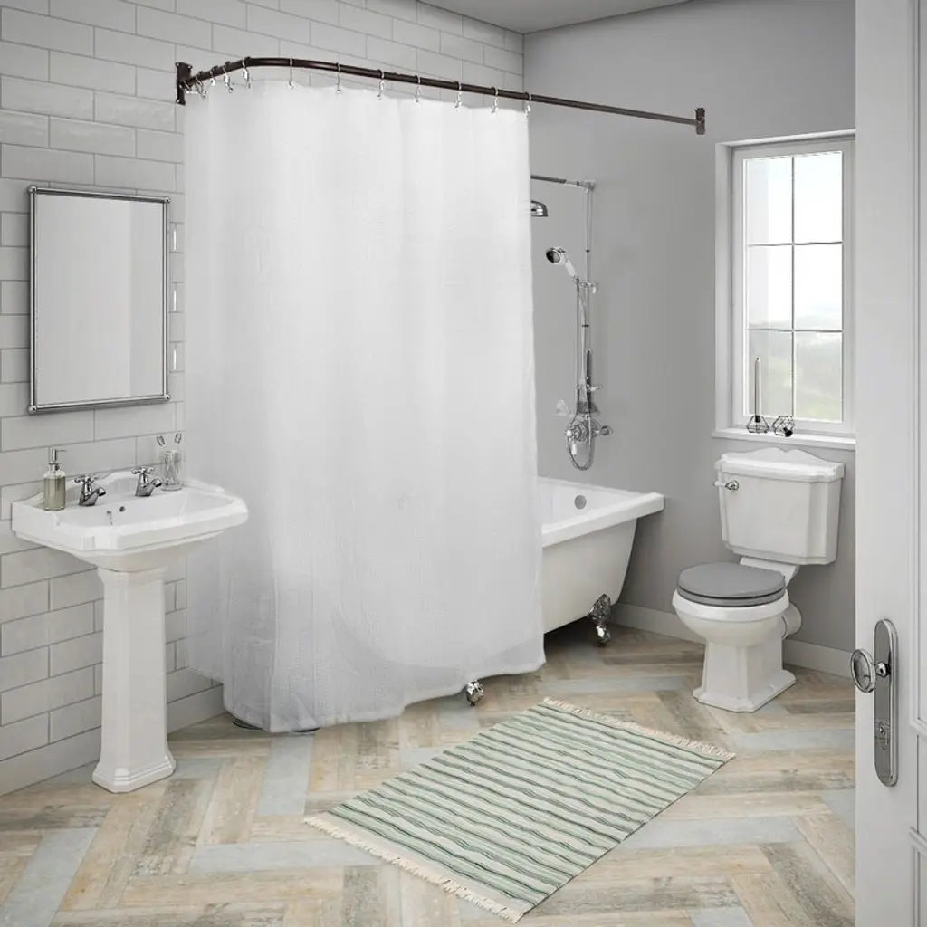This "L"-shaped wrap around shower rod is the perfect piece for any bathroom that does not have a wall straight across the tub! The rod bends at the corner for partially enclosed tubs/showers. Constructed with durable aluminum-- guaranteed rust free for life! Includes 2 mounting brackets to securely fasten into the side walls. Four screws in each mounting bracket (included). Easy to follow instructions with illustrations are included. Finished in white. Size: Tube: 1" diameter Actual rod dimensions: 66" L x 28" W (fits tubs up to this size) Can be cut for a custom fit ABOUT US: UTOPIA ALLEY is a woman-owned and operated business. Our goal is to provide our customers with furniture, home decor, essentials and accessories made with expert craftsmanship. We believe in creating a stylish, comfortable space where you can relax, recharge, and feel inspired.