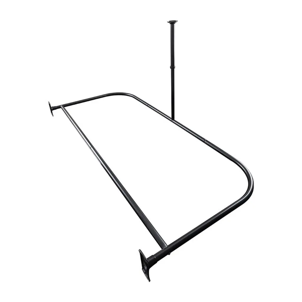 Utopia Alley Rustproof Aluminum D-Shape Shower Curtain Rods 60 Inch Large Size By 25 Inch, With White Shower Curtain 180x70 Inch - Black