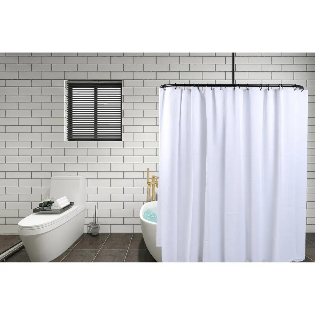 Product contains one white Shower Curtain 180 x 70 Inch and 36pcs hooks. Constructed with durable aluminum-- guaranteed rust free for life! D-shape curtain rod is perfect for freestanding tubs and shower spaces. Mounts onto the ceiling. Available in Matt Black, Brushed Nickel, Oil Rubbed Bronze, Polished Chrome and Gold. ABOUT US: UTOPIA ALLEY is a USA/woman-owned and operated business, you can shop with confidence for home decor, furniture bathroom accessories, and products with tailored needs. We believe in creating a stylish, comfortable space where you can relax, recharge, and feel inspired. Our products are expertly crafted to look visually beautiful, sophisticated, and constructed to last you for many years. Size: Overall length is 61" and Width is 28". Inside D measures 60" L x25" W. Ceiling support adjusts 24-30".