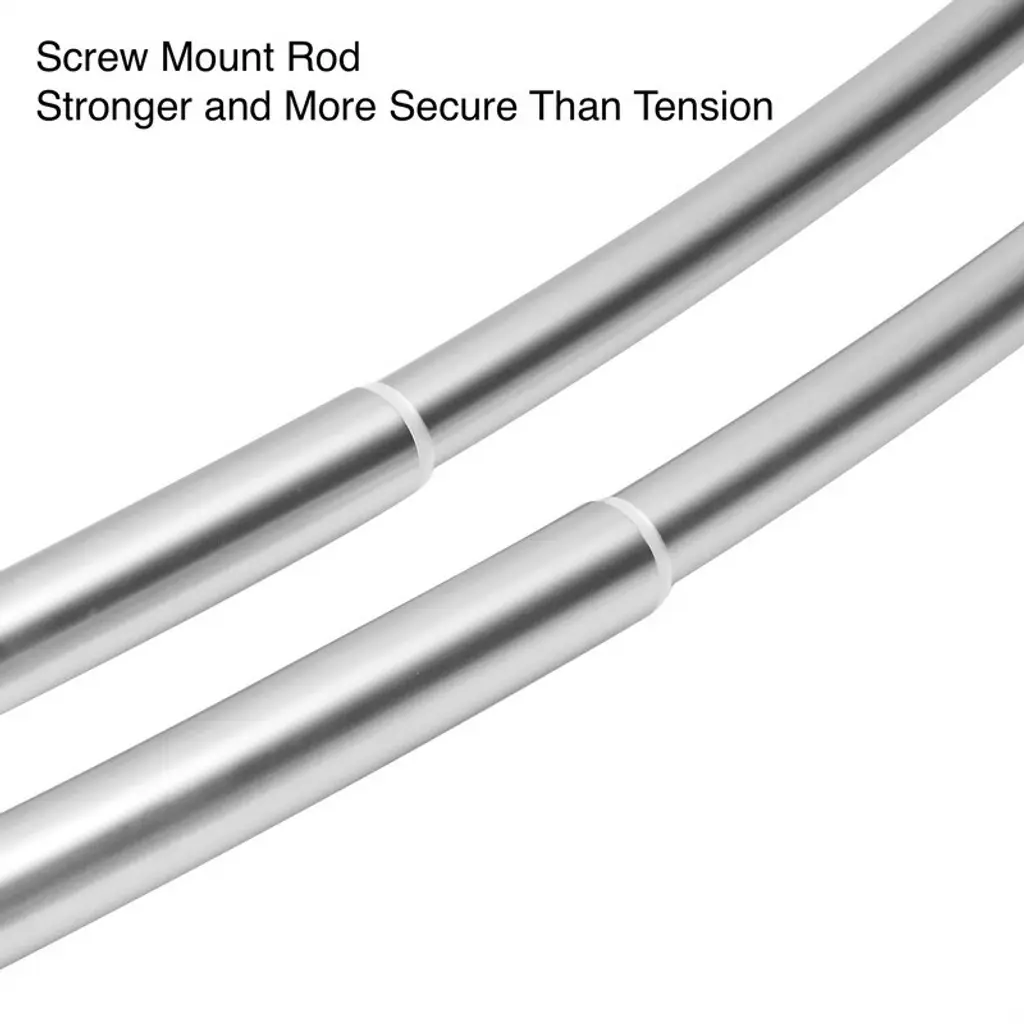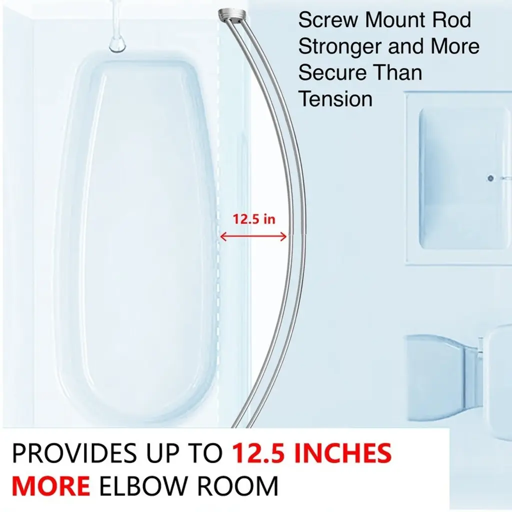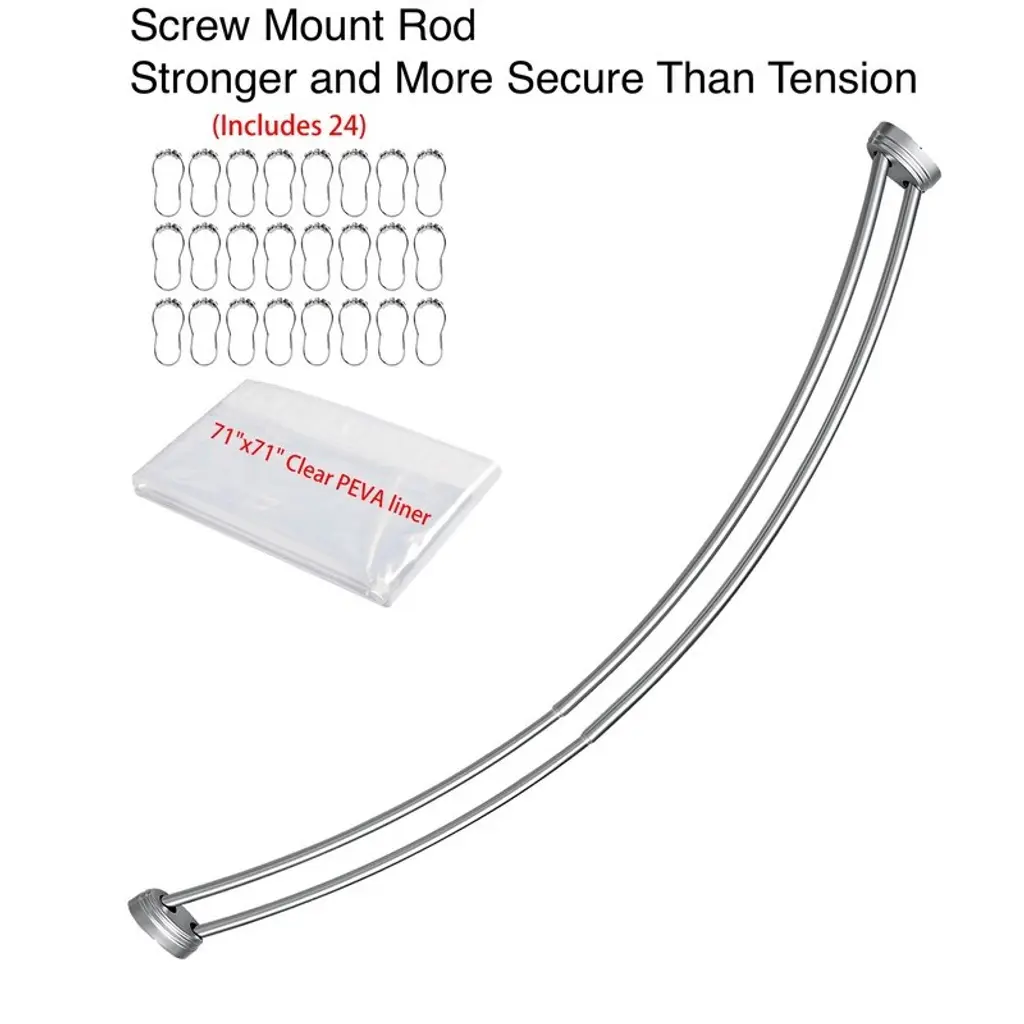 Securely mounts to the wall with screws. Product contains one 72" aluminum double curved rod, 24pcs shower hooks, one clear Shower Liner 71 x 71 Inch Upgrade your bathroom and create a serene shower space with Utopia Alley's double curved shower rods. It is perfect solution for showers of a variety of sizes. Expand and adjust to your specific bathroom layout. This shower rod curves around your tub to give you additional elbow room in your tub or shower and looks great too. Choose from an array of finishes to perfect match your decor. Made with 100% aluminum, guaranteed rust free for life! CURVED DESIGN: Provides extra elbow room in the shower. Drilling Required for installation. With two rods you can separate your shower liner and curtain. Additionally, if you choose to use the inner rod for both your liner and curtain you can use the outer rod to hang clothes and towels. This is the perfect choice for those looking to utilize more of their bathroom space. Size: 45" - 72" adjustable curved rod length. Fits standard 72" x 72" shower curtains. Its adaptable feature guarantees a precise fit in your bathroom space, providing an assurance of style and functionality. Elevate your bathroom's aesthetic with a shower rod that adjusts to your needs without sacrificing form or function. RUST-RESISTANT FINISH: Elevate your bathroom's decor with a rust-proof finish that adds sophistication and practicality. This shower rod's sleek design is resistant to rust and corrosion, ensuring it maintains its polished appearance for an extended period. Keep your space looking great for longer without worrying about water damage or stains on the shower rod. Enjoy the peace of mind that comes with having a stylish shower rod that can last for years to come. ABOUT US: UTOPIA ALLEY is a USA/woman-owned and operated business, you can shop with confidence for home decor, furniture bathroom accessories, and products with tailored needs. We believe in creating a stylish, comfortable space where you can relax, recharge, and feel inspired. Our products are expertly crafted to look visually beautiful, sophisticated, and constructed to last you for many years.
