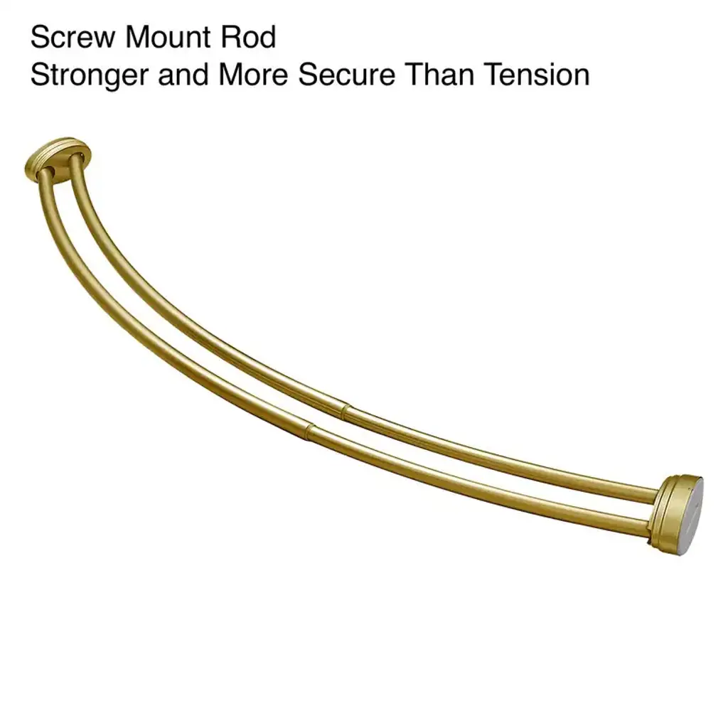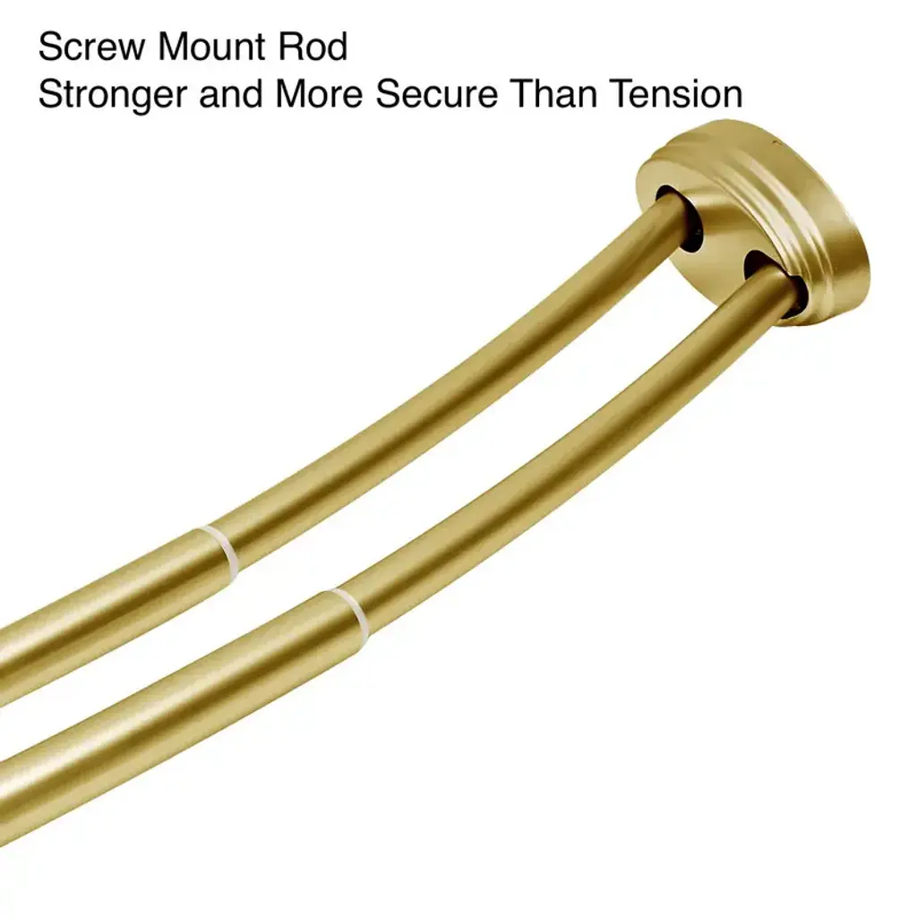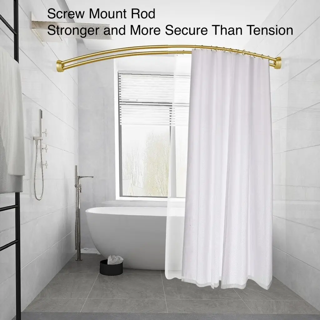 Securely mounts to the wall with screws. Product contains one 72" aluminum double curved rod, 24pcs shower hooks, one clear Shower Liner 71 x 71 Inch Upgrade your bathroom and create a serene shower space with Utopia Alley's double curved shower rods. It is perfect solution for showers of a variety of sizes. Expand and adjust to your specific bathroom layout. This shower rod curves around your tub to give you additional elbow room in your tub or shower and looks great too. Choose from an array of finishes to perfect match your decor. Made with 100% aluminum, guaranteed rust free for life! CURVED DESIGN: Provides extra elbow room in the shower. Drilling Required for installation. With two rods you can separate your shower liner and curtain. Additionally, if you choose to use the inner rod for both your liner and curtain you can use the outer rod to hang clothes and towels. This is the perfect choice for those looking to utilize more of their bathroom space. Size: 45" - 72" adjustable curved rod length. Fits standard 72" x 72" shower curtains. Its adaptable feature guarantees a precise fit in your bathroom space, providing an assurance of style and functionality. Elevate your bathroom's aesthetic with a shower rod that adjusts to your needs without sacrificing form or function. RUST-RESISTANT FINISH: Elevate your bathroom's decor with a rust-proof finish that adds sophistication and practicality. This shower rod's sleek design is resistant to rust and corrosion, ensuring it maintains its polished appearance for an extended period. Keep your space looking great for longer without worrying about water damage or stains on the shower rod. Enjoy the peace of mind that comes with having a stylish shower rod that can last for years to come. ABOUT US: UTOPIA ALLEY is a USA/woman-owned and operated business, you can shop with confidence for home decor, furniture bathroom accessories, and products with tailored needs. We believe in creating a stylish, comfortable space where you can relax, recharge, and feel inspired. Our products are expertly crafted to look visually beautiful, sophisticated, and constructed to last you for many years.