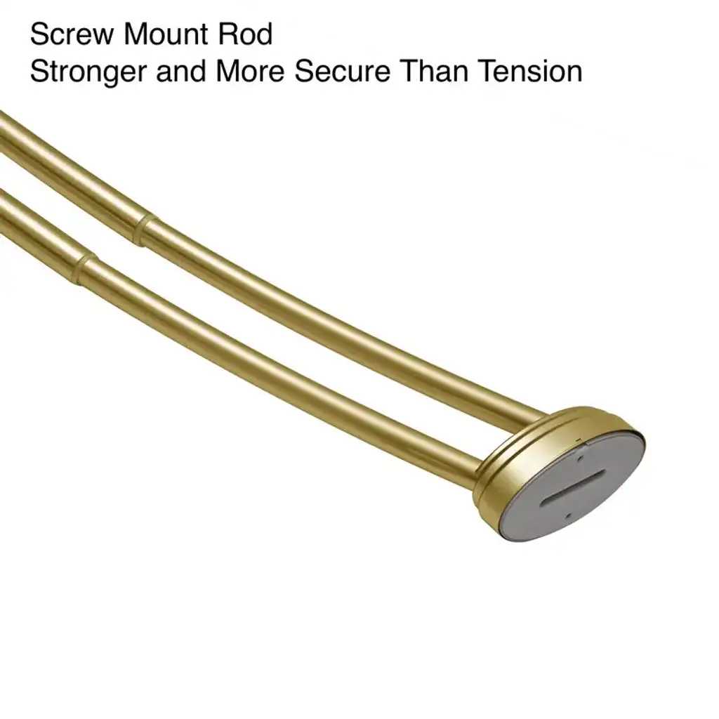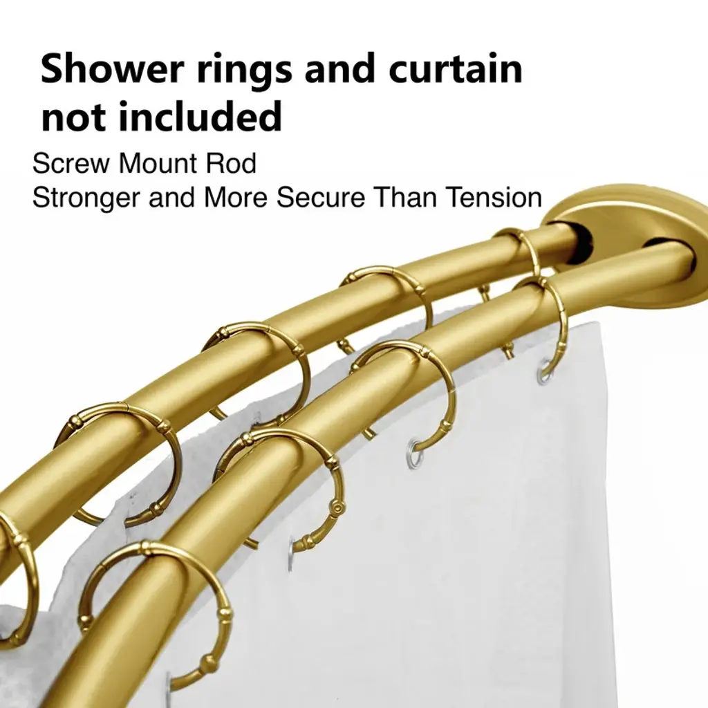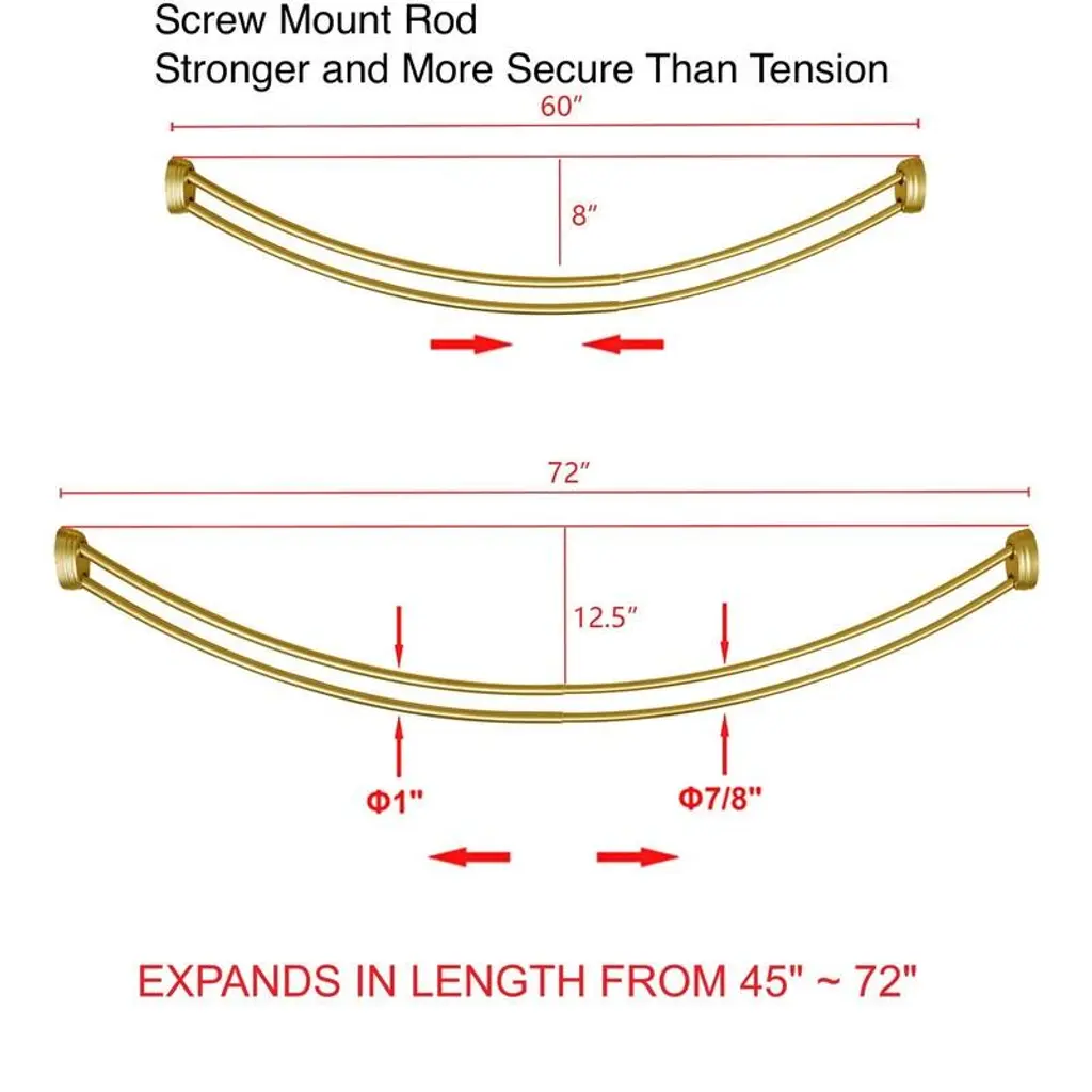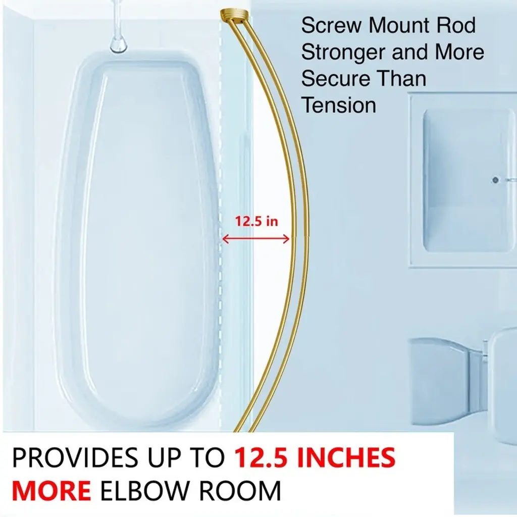 Securely mounts to the wall with screws. Product contains one 72" aluminum double curved rod, 24pcs shower hooks, one clear Shower Liner 71 x 71 Inch Upgrade your bathroom and create a serene shower space with Utopia Alley's double curved shower rods. It is perfect solution for showers of a variety of sizes. Expand and adjust to your specific bathroom layout. This shower rod curves around your tub to give you additional elbow room in your tub or shower and looks great too. Choose from an array of finishes to perfect match your decor. Made with 100% aluminum, guaranteed rust free for life! CURVED DESIGN: Provides extra elbow room in the shower. Drilling Required for installation. With two rods you can separate your shower liner and curtain. Additionally, if you choose to use the inner rod for both your liner and curtain you can use the outer rod to hang clothes and towels. This is the perfect choice for those looking to utilize more of their bathroom space. Size: 45" - 72" adjustable curved rod length. Fits standard 72" x 72" shower curtains. Its adaptable feature guarantees a precise fit in your bathroom space, providing an assurance of style and functionality. Elevate your bathroom's aesthetic with a shower rod that adjusts to your needs without sacrificing form or function. RUST-RESISTANT FINISH: Elevate your bathroom's decor with a rust-proof finish that adds sophistication and practicality. This shower rod's sleek design is resistant to rust and corrosion, ensuring it maintains its polished appearance for an extended period. Keep your space looking great for longer without worrying about water damage or stains on the shower rod. Enjoy the peace of mind that comes with having a stylish shower rod that can last for years to come. ABOUT US: UTOPIA ALLEY is a USA/woman-owned and operated business, you can shop with confidence for home decor, furniture bathroom accessories, and products with tailored needs. We believe in creating a stylish, comfortable space where you can relax, recharge, and feel inspired. Our products are expertly crafted to look visually beautiful, sophisticated, and constructed to last you for many years.