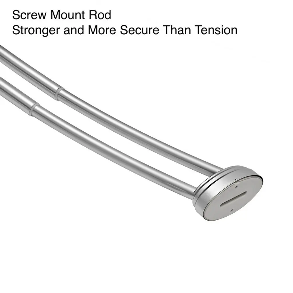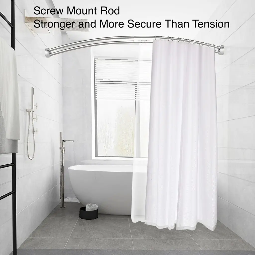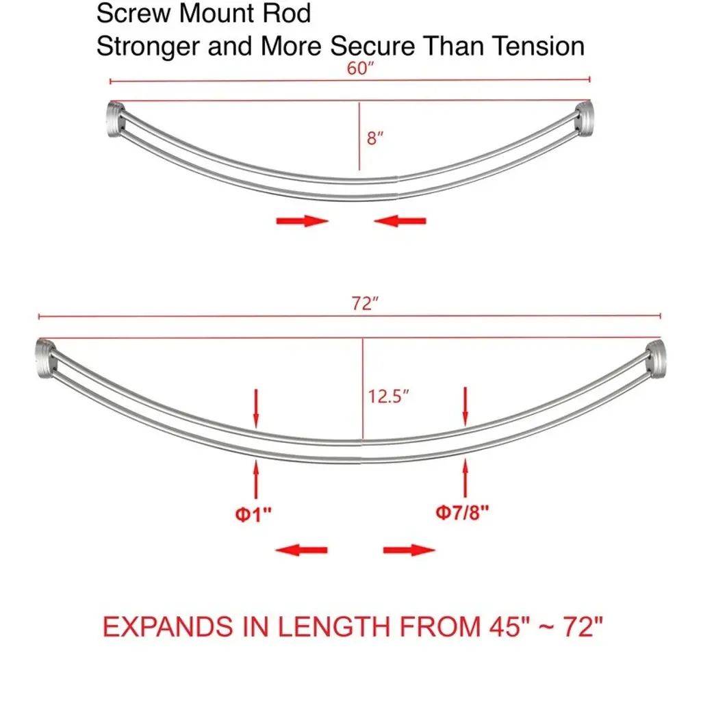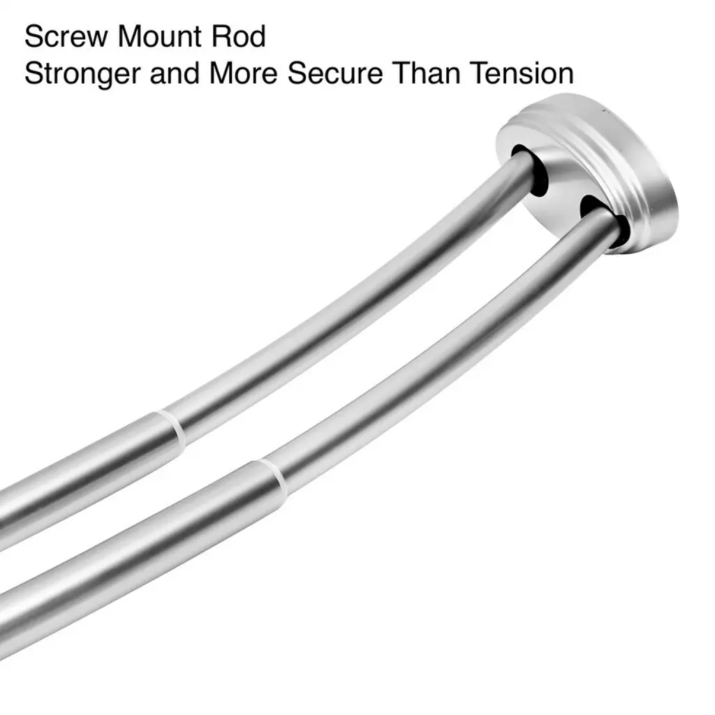 Upgrade your bathroom and create a serene shower space with Utopia Alley's double curved shower rods. It is perfect solution for showers of a variety of sizes. Expand and adjust to your specific bathroom layout. This shower rod curves around your tub to give you additional elbow room in your tub or shower and looks great too. Choose from an array of finishes to perfect match your decor. Securely mounts to the wall with screws. Made with 100% aluminum, guaranteed rust free for life! Available in 5 colors: Matt Black, Nickel, Bronze, Polished Chrome, Gold & White. CURVED DESIGN: Provides extra elbow room in the shower. Drilling Required for installation. With two rods you can separate your shower liner and curtain. Additionally, if you choose to use the inner rod for both your liner and curtain you can use the outer rod to hang clothes and towels. This is the perfect choice for those looking to utilize more of their bathroom space. Size: 45" - 72" adjustable curved rod length. Fits standard 72" x 72" shower curtains. Its adaptable feature guarantees a precise fit in your bathroom space, providing an assurance of style and functionality. Elevate your bathroom's aesthetic with a shower rod that adjusts to your needs without sacrificing form or function. RUST-RESISTANT FINISH: Elevate your bathroom's decor with a rust-proof finish that adds sophistication and practicality. This shower rod's sleek design is resistant to rust and corrosion, ensuring it maintains its polished appearance for an extended period. Keep your space looking great for longer without worrying about water damage or stains on the shower rod. Enjoy the peace of mind that comes with having a stylish shower rod that can last for years to come. ABOUT US: UTOPIA ALLEY is a USA/woman-owned and operated business, you can shop with confidence for home decor, furniture bathroom accessories, and products with tailored needs. We believe in creating a stylish, comfortable space where you can relax, recharge, and feel inspired. Our products are expertly crafted to look visually beautiful, sophisticated, and constructed to last you for many years.