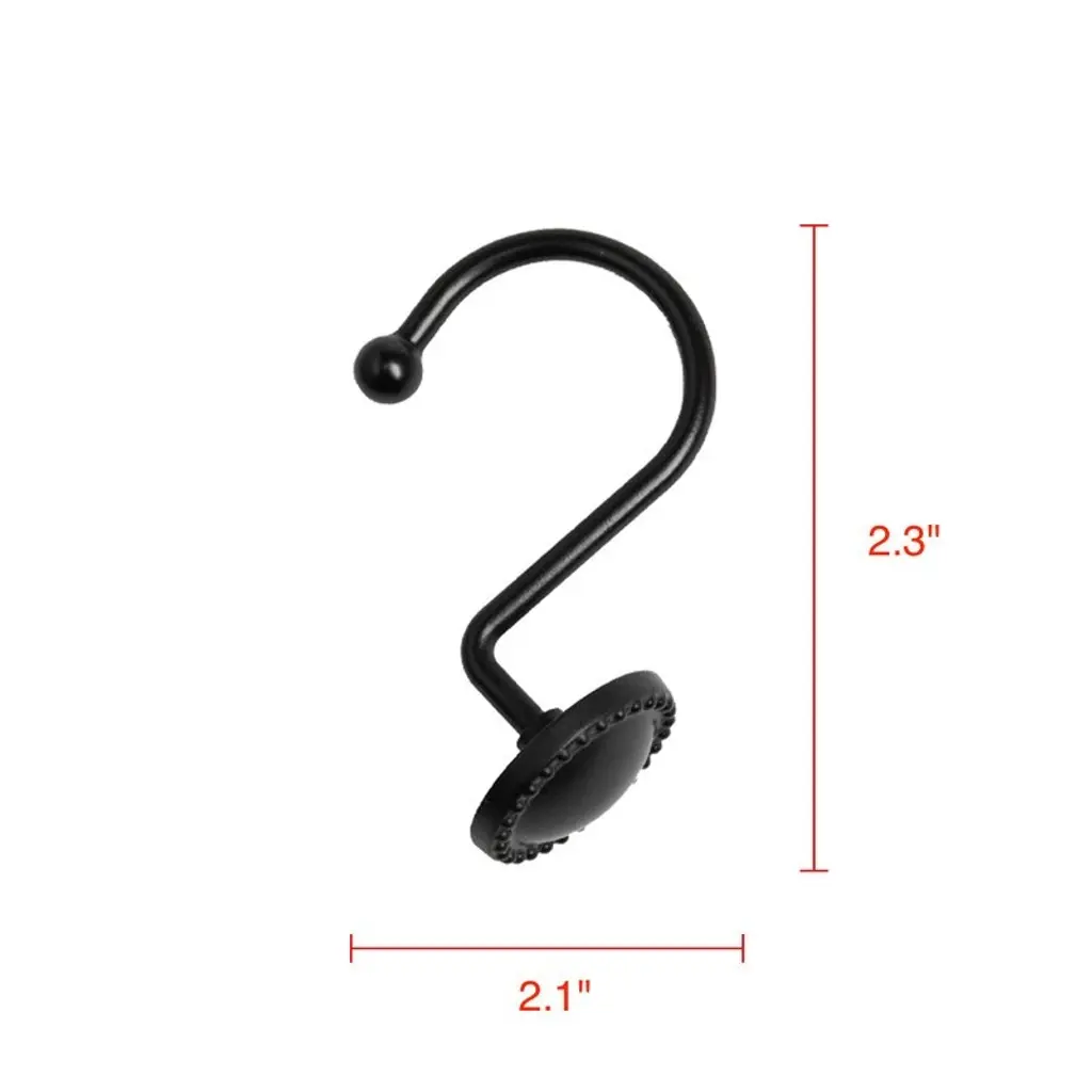 SHOWER CURTAIN HOOKS: Get both style and function with our shower curtain hooks. These bathroom curtain hooks feature a beautiful finish and a classy design that can add style and complement your existing decor. Our hooks for shower rods are designed to keep your shower curtain in place and are easy to install. Our shower curtain hook's charming design and functionality make it an essential bathroom accessory. DURABLE & RUST-PROOF MATERIAL: These shower curtain hooks are made of rust-proof, zinc-alloy that won't easily bend, break or rust. They are made from a zinc alloy to keep them secure and modern. These rust-proof hooks are sturdy, which means you don't need to replace them frequently anytime soon, and they can be used for many years.EASY TO INSTALL: Taking your shower curtain off is a bit of a squeeze, but putting it back on should be a breeze! Our sleek shower curtain hooks are easy to install and coordinate with many bath hardware finishes; simply put it on the shower rod. Our curtain hooks in a set of 12 are designed for easy removal, so you can swap them out when it's time for a new look or you need to replace your shower curtain or liner.AVAILABLE COLORS: Amp up your bathroom space and get organized with these shower curtain hooks. Beautifully suited for any bathroom, these hooks come in a wide range of colors; Polished Chrome, Oil Rubbed Bronze, Brushed Nickel, Matte Black, and Gold.ABOUT US: UTOPIA ALLEY is a woman-owned and operated business. Our goal is to provide our customers with furniture, home decor, essentials, and accessories made with durable products and exceptional craftsmanship. We believe in creating a stylish, comfortable space where you can relax, recharge, and feel inspired.