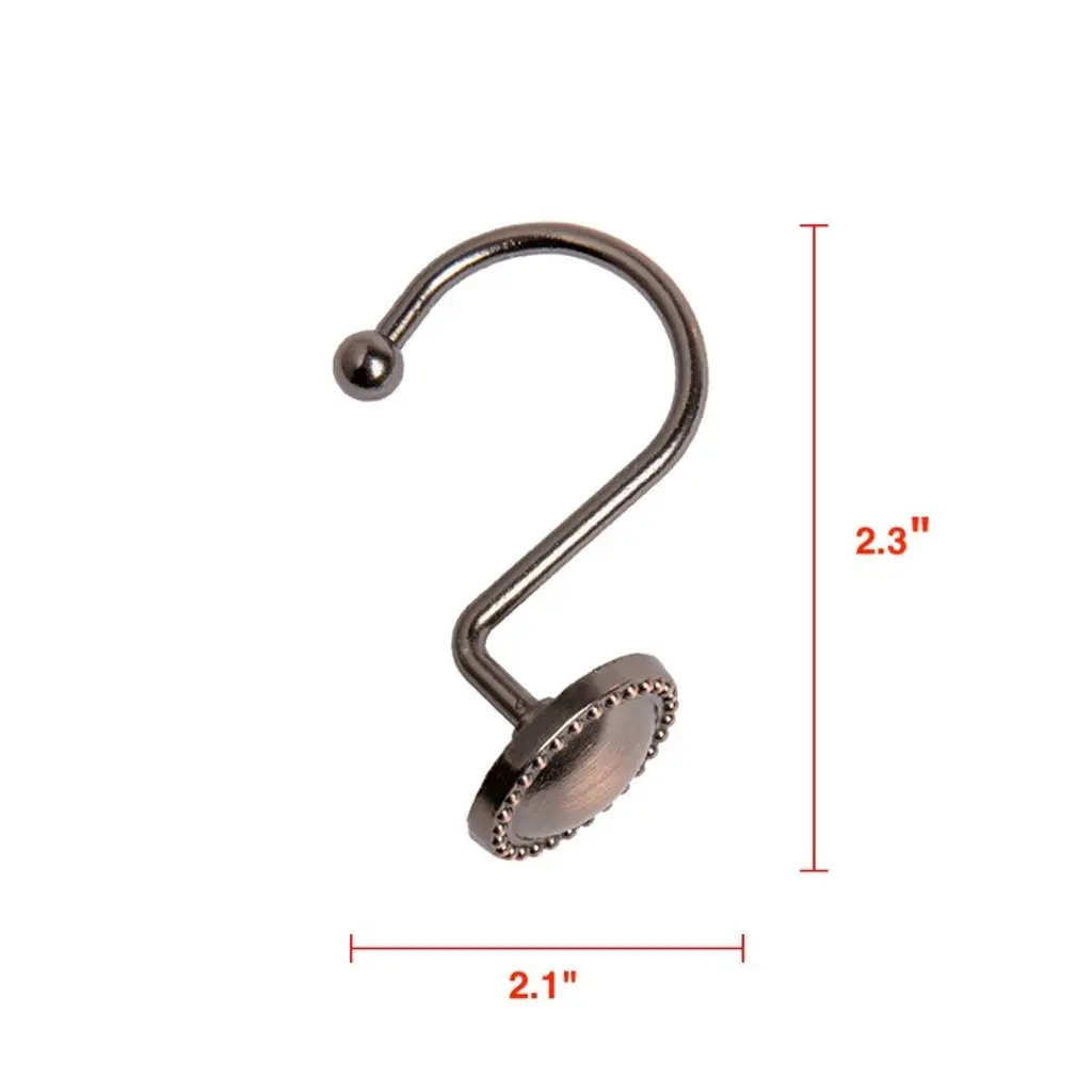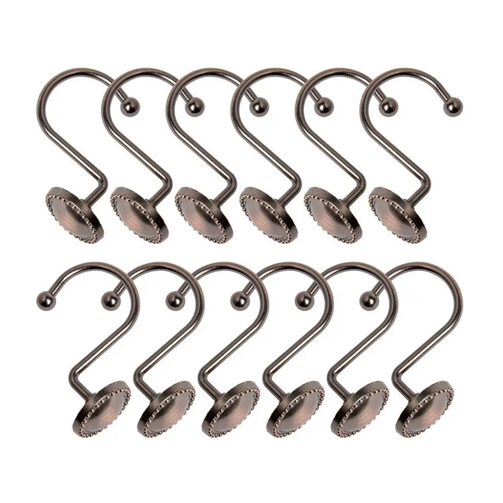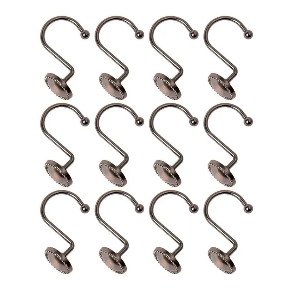 SHOWER CURTAIN HOOKS: Get both style and function with our shower curtain hooks. These bathroom curtain hooks feature a beautiful finish and a classy design that can add style and complement your existing decor. Our hooks for shower rods are designed to keep your shower curtain in place and are easy to install. Our shower curtain hook's charming design and functionality make it an essential bathroom accessory. DURABLE & RUST-PROOF MATERIAL: These shower curtain hooks are made of rust-proof, zinc-alloy that won't easily bend, break or rust. They are made from a zinc alloy to keep them secure and modern. These rust-proof hooks are sturdy, which means you don't need to replace them frequently anytime soon, and they can be used for many years.EASY TO INSTALL: Taking your shower curtain off is a bit of a squeeze, but putting it back on should be a breeze! Our sleek shower curtain hooks are easy to install and coordinate with many bath hardware finishes; simply put it on the shower rod. Our curtain hooks in a set of 12 are designed for easy removal, so you can swap them out when it's time for a new look or you need to replace your shower curtain or liner.AVAILABLE COLORS: Amp up your bathroom space and get organized with these shower curtain hooks. Beautifully suited for any bathroom, these hooks come in a wide range of colors; Polished Chrome, Oil Rubbed Bronze, Brushed Nickel, Matte Black, and Gold.ABOUT US: UTOPIA ALLEY is a woman-owned and operated business. Our goal is to provide our customers with furniture, home decor, essentials, and accessories made with durable products and exceptional craftsmanship. We believe in creating a stylish, comfortable space where you can relax, recharge, and feel inspired.