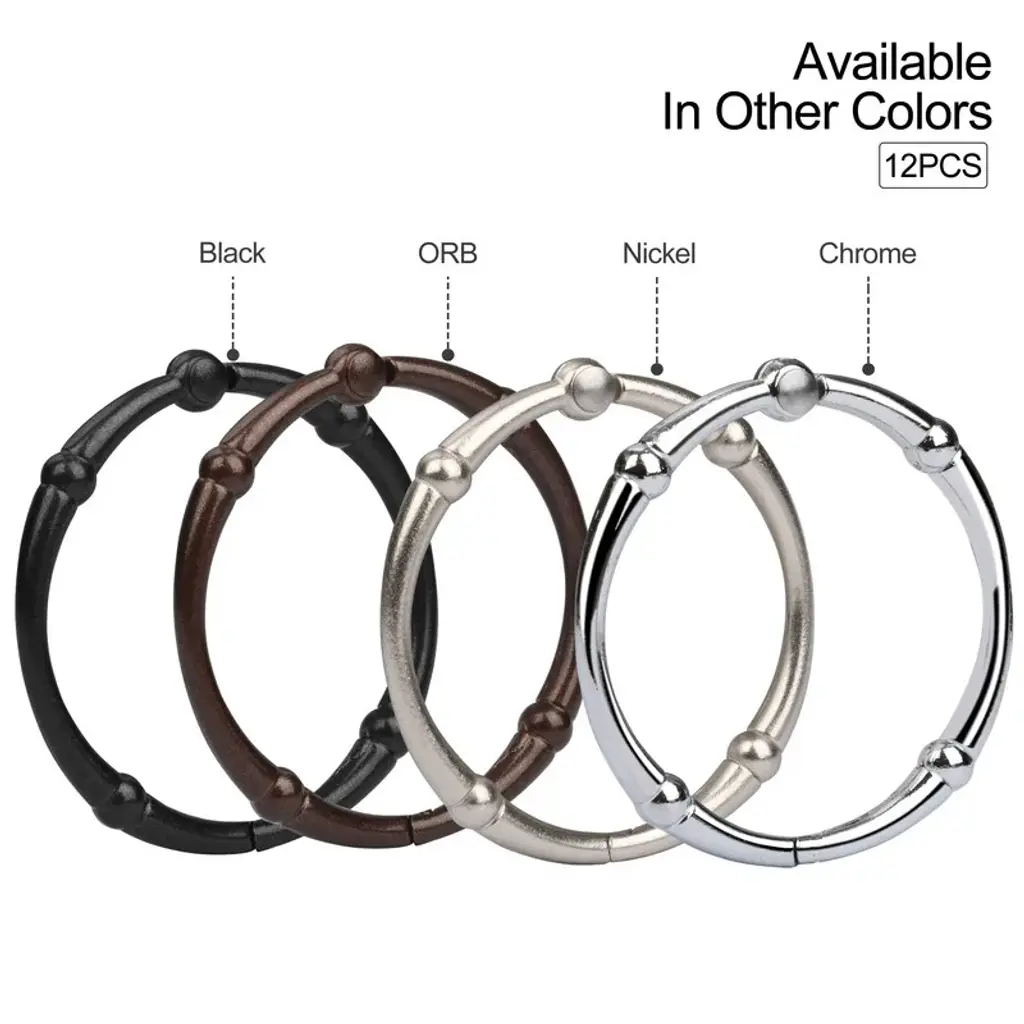 SHOWER CURTAIN RINGS: Get both style and function with our shower curtain rings. These bathroom curtain rings feature a beautiful finish and a classy design that can add style and complement your existing decor. Our rings for shower rods are designed to keep your shower curtain in place and are easy to install. Our shower curtain ring's charming design and functionality make it an essential bathroom accessory. DURABLE & RUST-PROOF MATERIAL: These shower curtain rings are made of rust-proof, zinc-alloy that won't easily bend, break or rust. They are made from a zinc alloy to keep them secure and modern. These rust-proof rings are sturdy, which means you don't need to replace them frequently anytime soon, and they can be used for many years. EASY TO INSTALL: Taking your shower curtain off is a bit of a squeeze, but putting it back on should be a breeze! Our sleek shower curtain rings are easy to install and coordinate with many bath hardware finishes; simply put it on the shower rod. Our curtain rings in a set of 12 are designed for easy removal, so you can swap them out when it's time for a new look or you need to replace your shower curtain or liner. AVAILABLE COLORS: Amp up your bathroom space and get organized with these shower curtain rings. Beautifully suited for any bathroom, these rings come in a wide range of colors; Polished Chrome, Oil Rubbed Bronze, Brushed Nickel, and Matte Black. ABOUT US: UTOPIA ALLEY is a woman-owned and operated business. Our goal is to provide our customers with furniture, home decor, essentials, and accessories made with durable products and exceptional craftsmanship. We believe in creating a stylish, comfortable space where you can relax, recharge, and feel inspired.