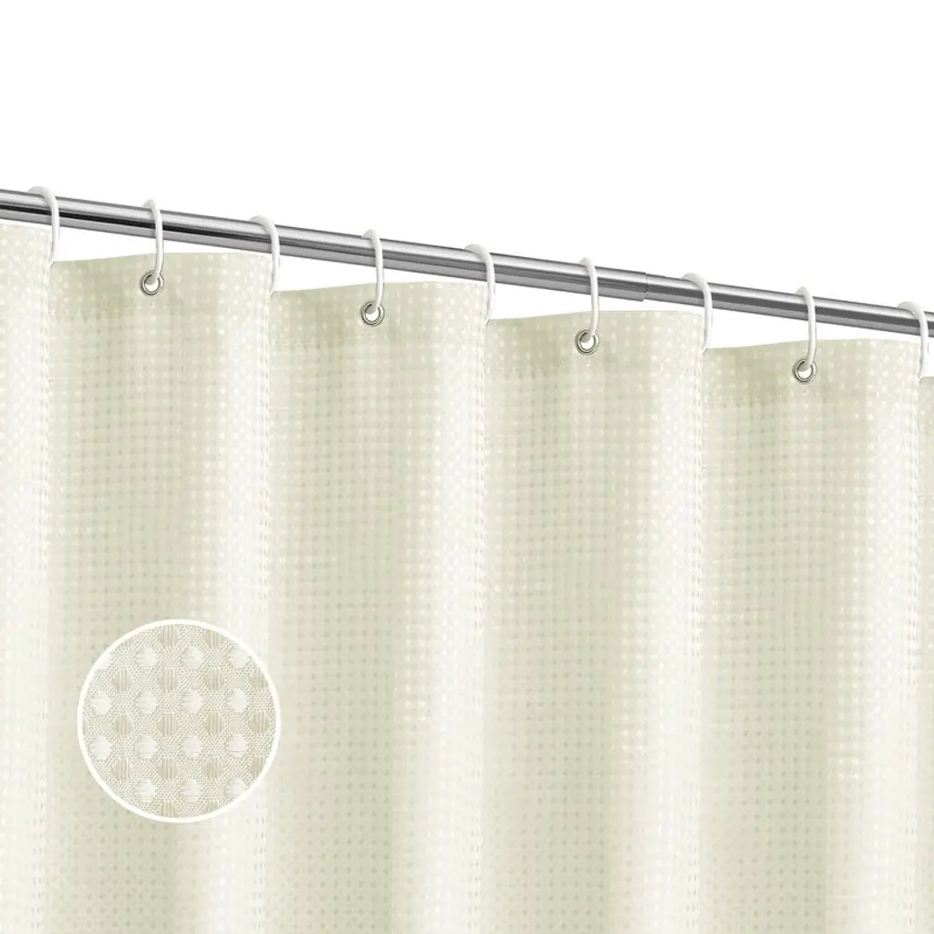 Utopia Alley Waffle Weave Shower Curtain For Bathroom, 120 Gsm Weighted Polyester Bath Curtain 71 × 71 In - Beige