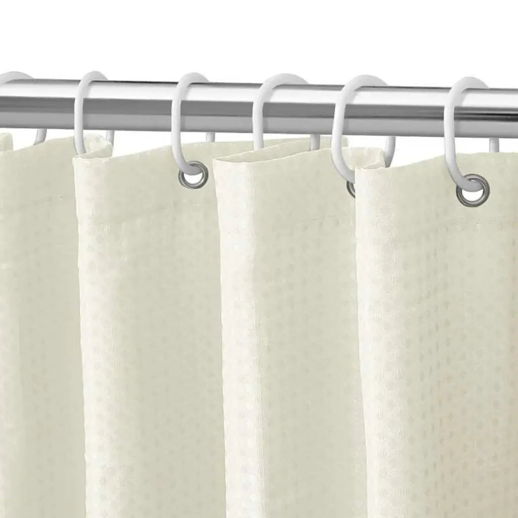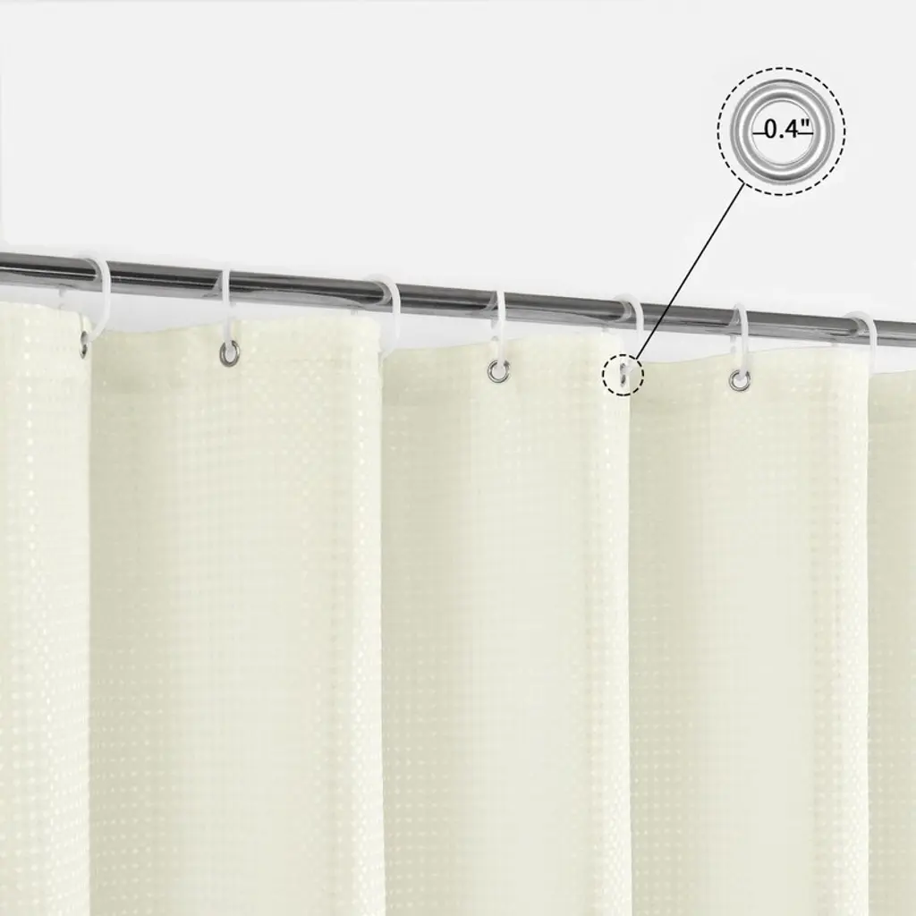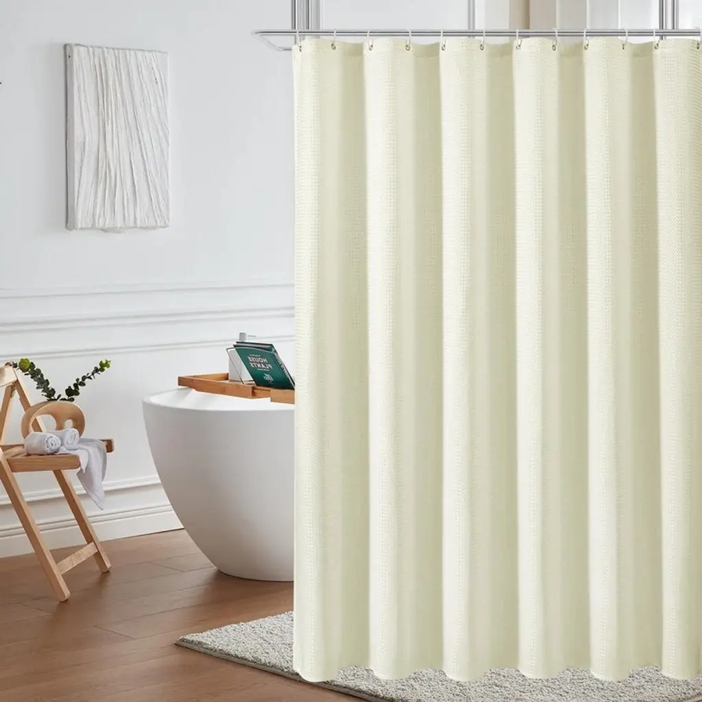 The UTOPIA ALLEY waffle weave shower curtain provides an elegant solution for enhancing your bathroom decor. It is easy to install, allowing for stylish decoration. Crafted from polyester fiber, this shower curtain ensures privacy when needed. For easy maintenance, simply toss it in the wash when it needs refreshing. It comes in six colors: Green, White, Black, Grey, Beige, and Navy Blue. EASY INSTALLATION: The waffle weave shower curtain without hooks. Made from 120 gsm weighted polyester, it fits most standard-sized bathtubs and showers. The modern grommet design adds an elegant touch to your bathroom, making the waffle weave shower curtain easy to install. WATER-REPELLENT: The waffle weave shower curtains are made from polyester, providing a soft touch while being water-repellent. The waterproof technology allows water to slide off effortlessly, promoting quick drying and ensuring that your waffle shower curtain remains fresh and clean. BATHROOM DÉCOR: The waffle weave shower curtains are suitable for a variety of spaces and can be used as either tiered or traditional shower curtains. They are ideal for the bathroom or wherever shower curtains are needed. This modern fabric shower curtain is designed to provide a luxurious experience, featuring a soft texture, while the classic waffle weave pattern adds an elegant touch to your bathroom. MAINTAINING PRIVACY: The shower curtain for your bathroom, featuring a chic waffle weave pattern, adds elegance to the space. This design enhances privacy. The waffle weave shower curtains transforms your shower into a spa-like experience. EASY CARE: Shower curtains are easy to maintain and user-friendly. They are machine washable in cold water, gentle cycle, dries quickly. Avoid using bleach, select mild detergents that do not contain bleach. When ironing, use a cool iron and avoid sharp objects that may scratch the fabric. ABOUT US: UTOPIA ALLEY is a woman-owned and operated business. Our goal is to provide our customers with furniture, home decor, essentials and accessories made with expert craftsmanship. We believe in creating a stylish, comfortable space where you can relax, recharge, and feel inspired.