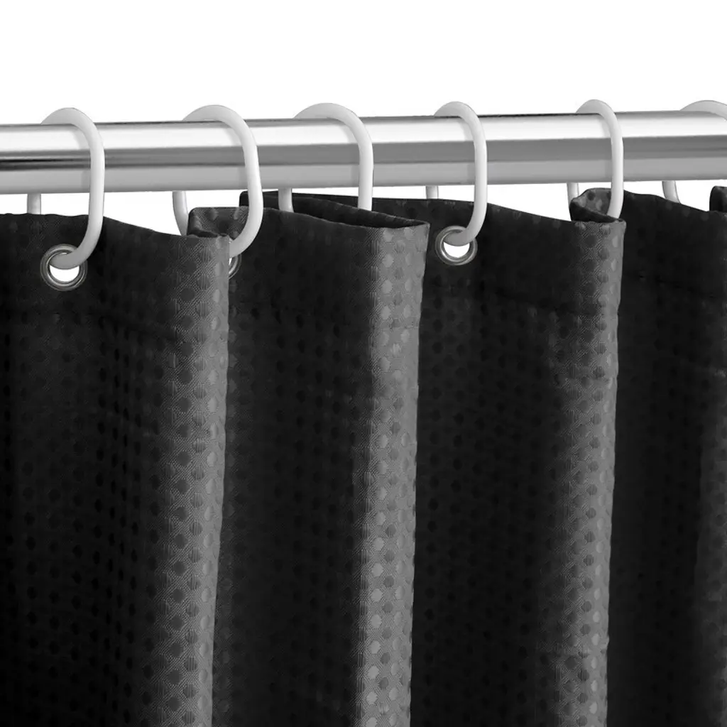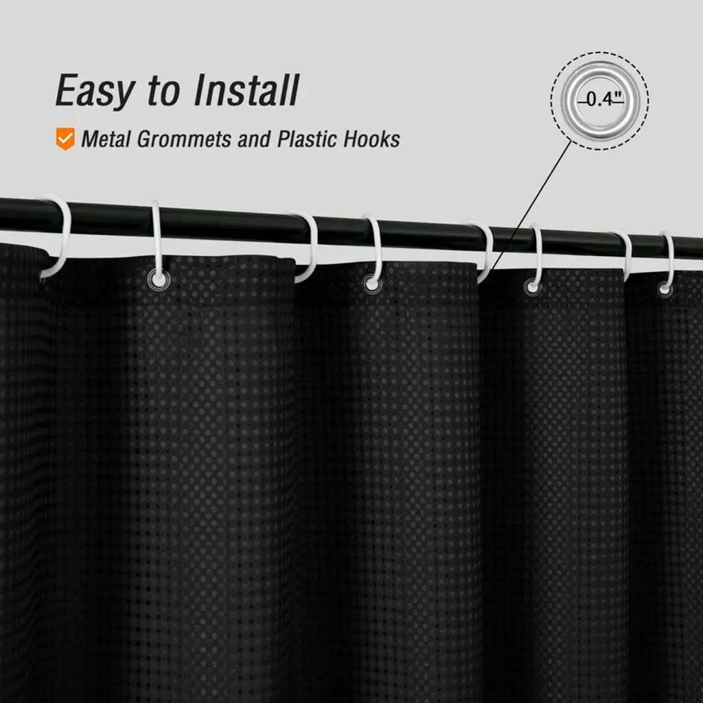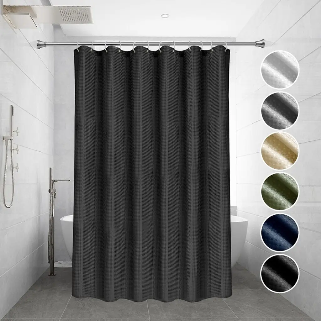 Utopia Alley Waffle Weave Shower Curtain For Bathroom, 120 Gsm Weighted Polyester Bath Curtain 71 × 79 In - Black