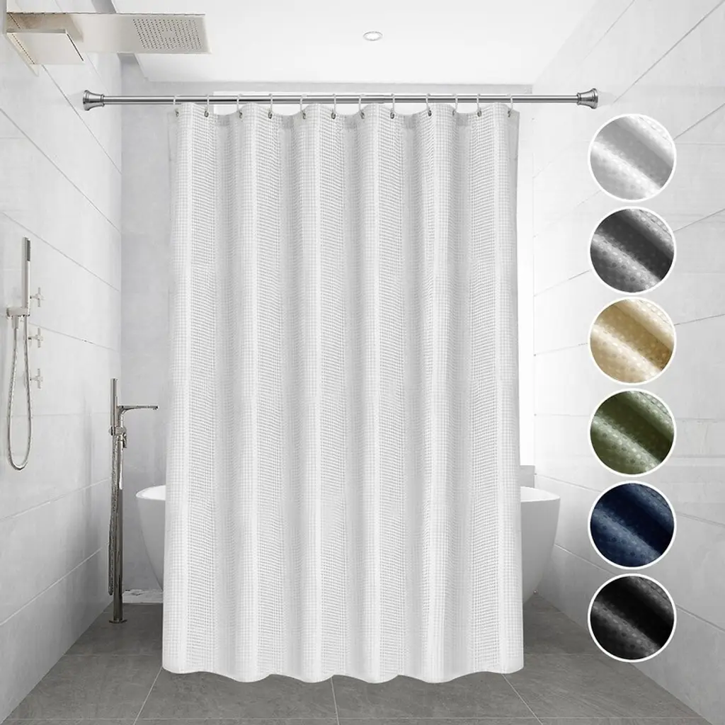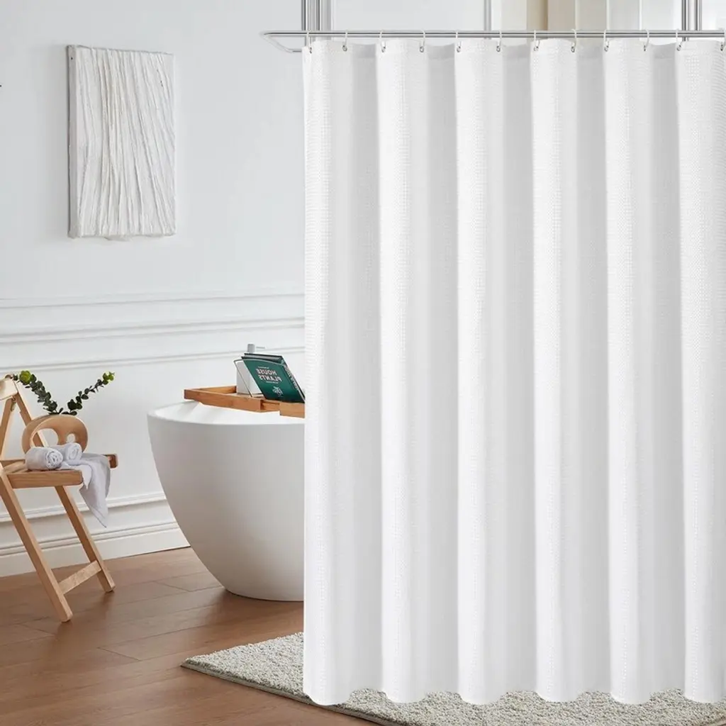 The UTOPIA ALLEY waffle weave shower curtain provides an elegant solution for enhancing your bathroom decor. It is easy to install, allowing for stylish decoration. Crafted from polyester fiber, this shower curtain ensures privacy when needed. For easy maintenance, simply toss it in the wash when it needs refreshing. It comes in six colors: Green, White, Black, Grey, Beige, and Navy Blue. EASY INSTALLATION: The waffle weave shower curtain without hooks. Made from 120 gsm weighted polyester, it fits most standard-sized bathtubs and showers. The modern grommet design adds an elegant touch to your bathroom, making the waffle weave shower curtain easy to install. WATER-REPELLENT: The waffle weave shower curtains are made from polyester, providing a soft touch while being water-repellent. The waterproof technology allows water to slide off effortlessly, promoting quick drying and ensuring that your waffle shower curtain remains fresh and clean. BATHROOM DÉCOR: The waffle weave shower curtains are suitable for a variety of spaces and can be used as either tiered or traditional shower curtains. They are ideal for the bathroom or wherever shower curtains are needed. This modern fabric shower curtain is designed to provide a luxurious experience, featuring a soft texture, while the classic waffle weave pattern adds an elegant touch to your bathroom. MAINTAINING PRIVACY: The shower curtain for your bathroom, featuring a chic waffle weave pattern, adds elegance to the space. This design enhances privacy. The waffle weave shower curtains transforms your shower into a spa-like experience. EASY CARE: Shower curtains are easy to maintain and user-friendly. They are machine washable in cold water, gentle cycle, dries quickly. Avoid using bleach, select mild detergents that do not contain bleach. When ironing, use a cool iron and avoid sharp objects that may scratch the fabric. ABOUT US: UTOPIA ALLEY is a woman-owned and operated business. Our goal is to provide our customers with furniture, home decor, essentials and accessories made with expert craftsmanship. We believe in creating a stylish, comfortable space where you can relax, recharge, and feel inspired.