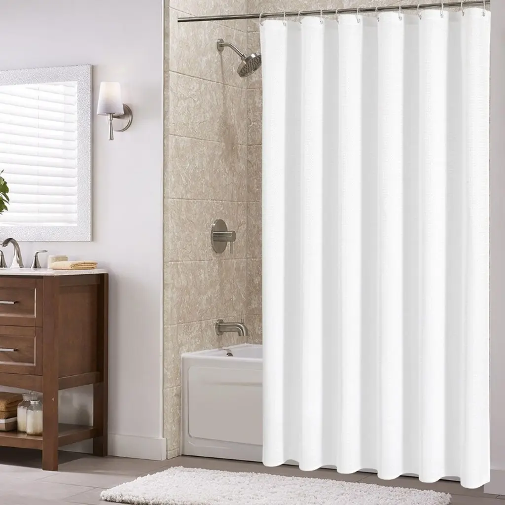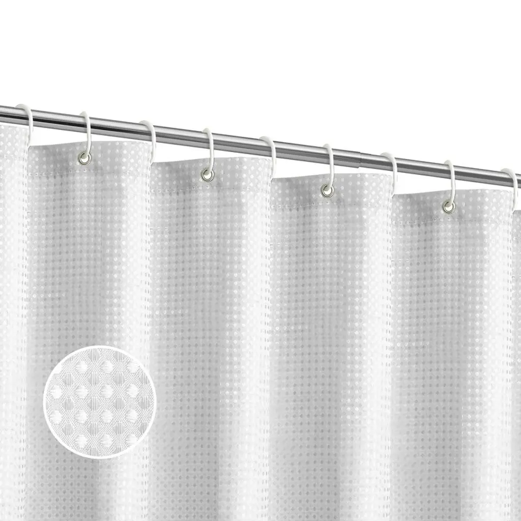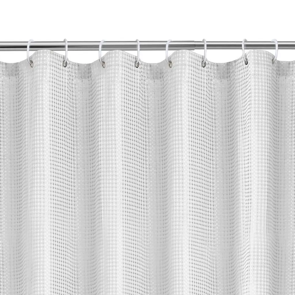 Utopia Alley Waffle Weave Shower Curtain For Bathroom, 120 Gsm Weighted Polyester Bath Curtain 71 × 79 In - White