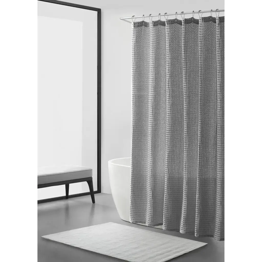 Vera Wang Marled Waffle Grey Shower Curtain