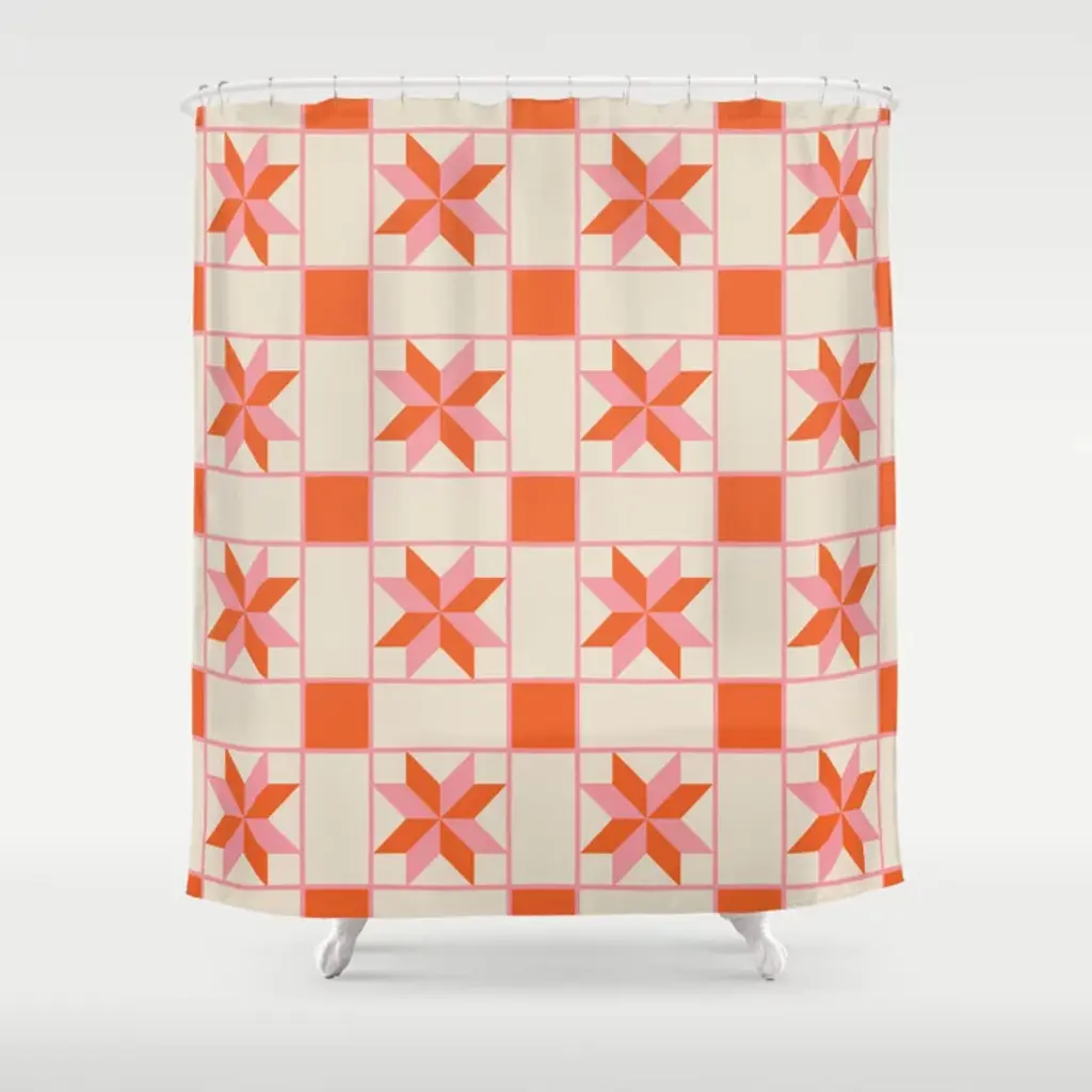 Vibrant Colorful Star Quilt Pattern Shower Curtain