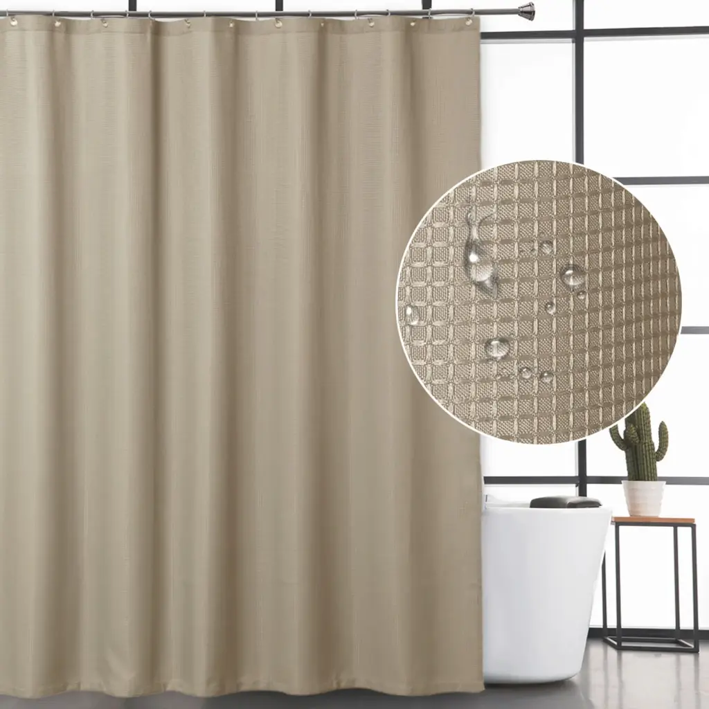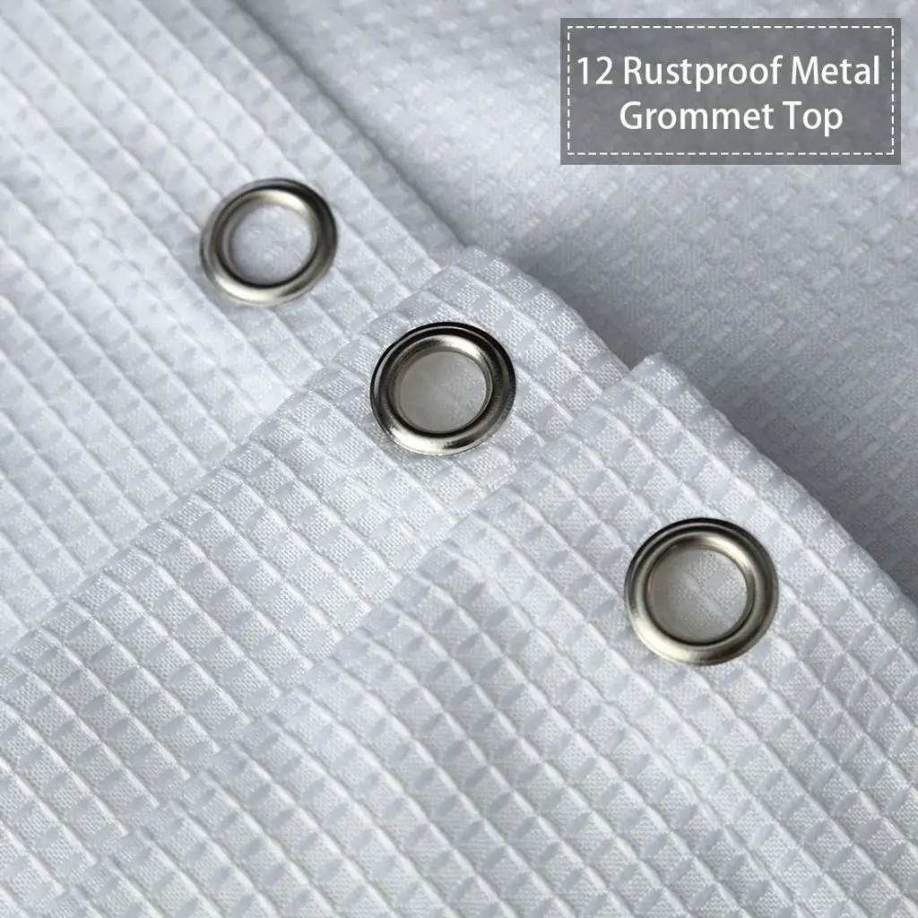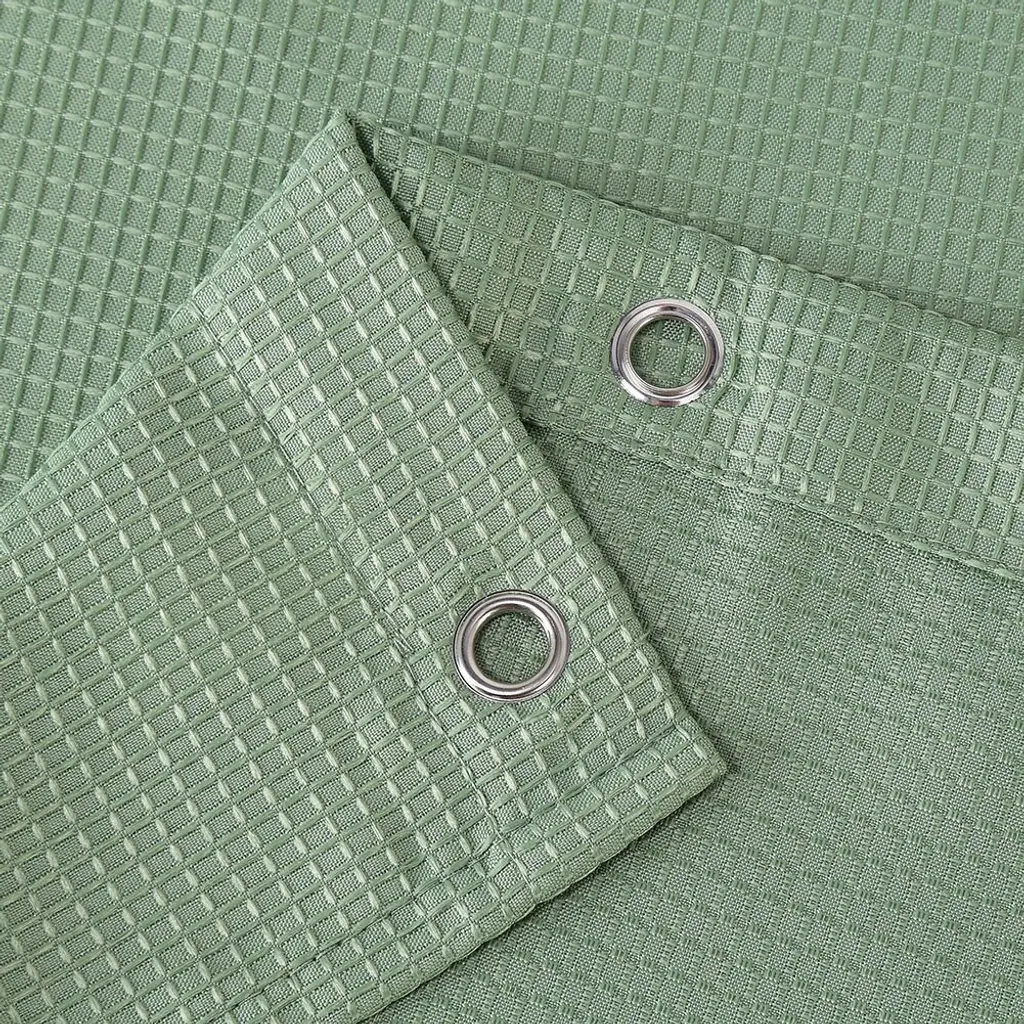 Update and elevate your bathroom with our stylish Waffle Fabric Shower Curtain. Made from high-quality 100% polyester fabric, this curtain features an exquisite waffle weave texture that adds a touch of modern elegance to any bathroom setting. It is treated to repel water and resist soaking, making it perfect for moisture-rich environments. The reinforced top header with 12 rust-resistant metal grommets ensures easy hanging and durability. Available in various colors and sizes, it is sure to fit most bathtubs and showers. Easy to care for, simply machine wash and tumble dry. Upgrade your bathroom decor with our Waffle Fabric Shower Curtain and enjoy both style and functionality. Features: Made from 100% polyester waffle woven textured fabric at 150gsm for a modern and simple design. Small waffle weave texture adds a stylish touch to any bathroom setting or color scheme. Features a reinforced top header with 12 rust-resistant metal grommets for durability and fade-resistant fabric for long-lasting use. Designed to repel water and resist soaking, although it is not completely waterproof. It is recommended to use with an interior shower curtain liner (not included). Machine washable in cold water on a gentle cycle. Tumble dry on low heat. Can be cool ironed if needed.