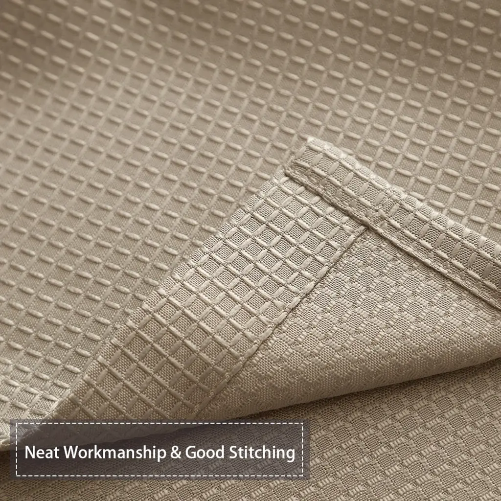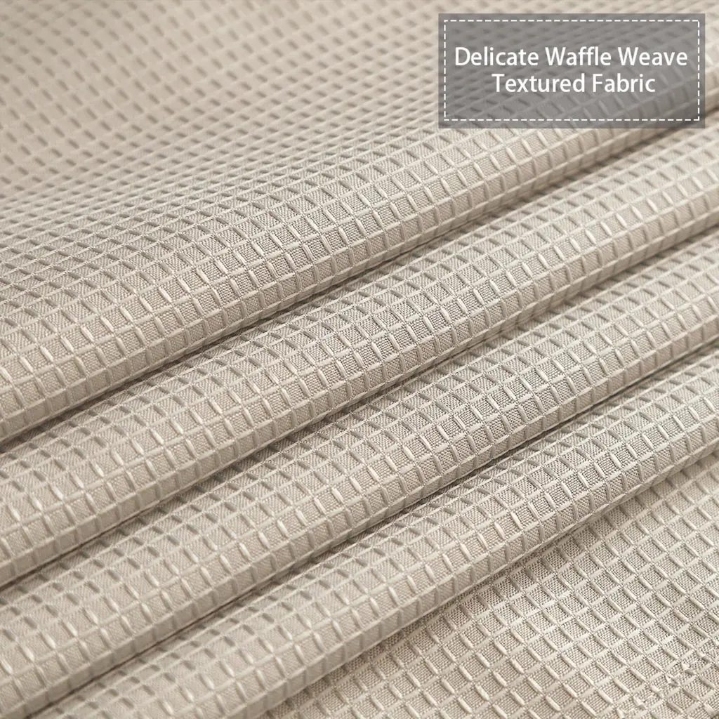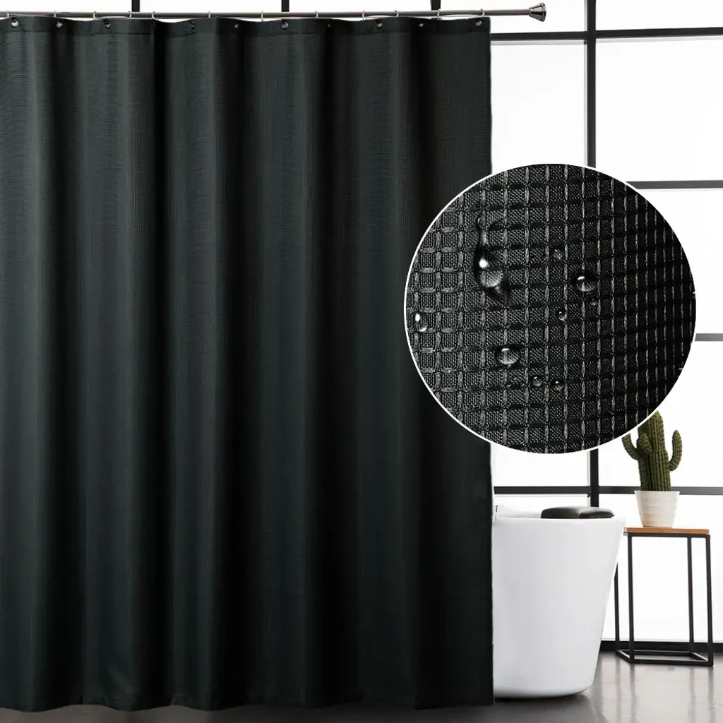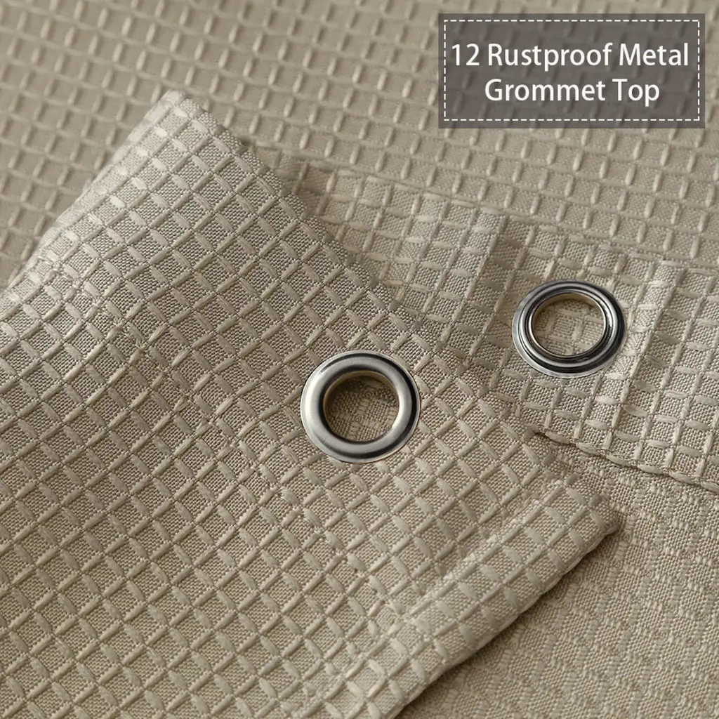 Update and elevate your bathroom with our stylish Waffle Fabric Shower Curtain. Made from high-quality 100% polyester fabric, this curtain features an exquisite waffle weave texture that adds a touch of modern elegance to any bathroom setting. It is treated to repel water and resist soaking, making it perfect for moisture-rich environments. The reinforced top header with 12 rust-resistant metal grommets ensures easy hanging and durability. Available in various colors and sizes, it is sure to fit most bathtubs and showers. Easy to care for, simply machine wash and tumble dry. Upgrade your bathroom decor with our Waffle Fabric Shower Curtain and enjoy both style and functionality. Features: Made from 100% polyester waffle woven textured fabric at 150gsm for a modern and simple design. Small waffle weave texture adds a stylish touch to any bathroom setting or color scheme. Features a reinforced top header with 12 rust-resistant metal grommets for durability and fade-resistant fabric for long-lasting use. Designed to repel water and resist soaking, although it is not completely waterproof. It is recommended to use with an interior shower curtain liner (not included). Machine washable in cold water on a gentle cycle. Tumble dry on low heat. Can be cool ironed if needed.